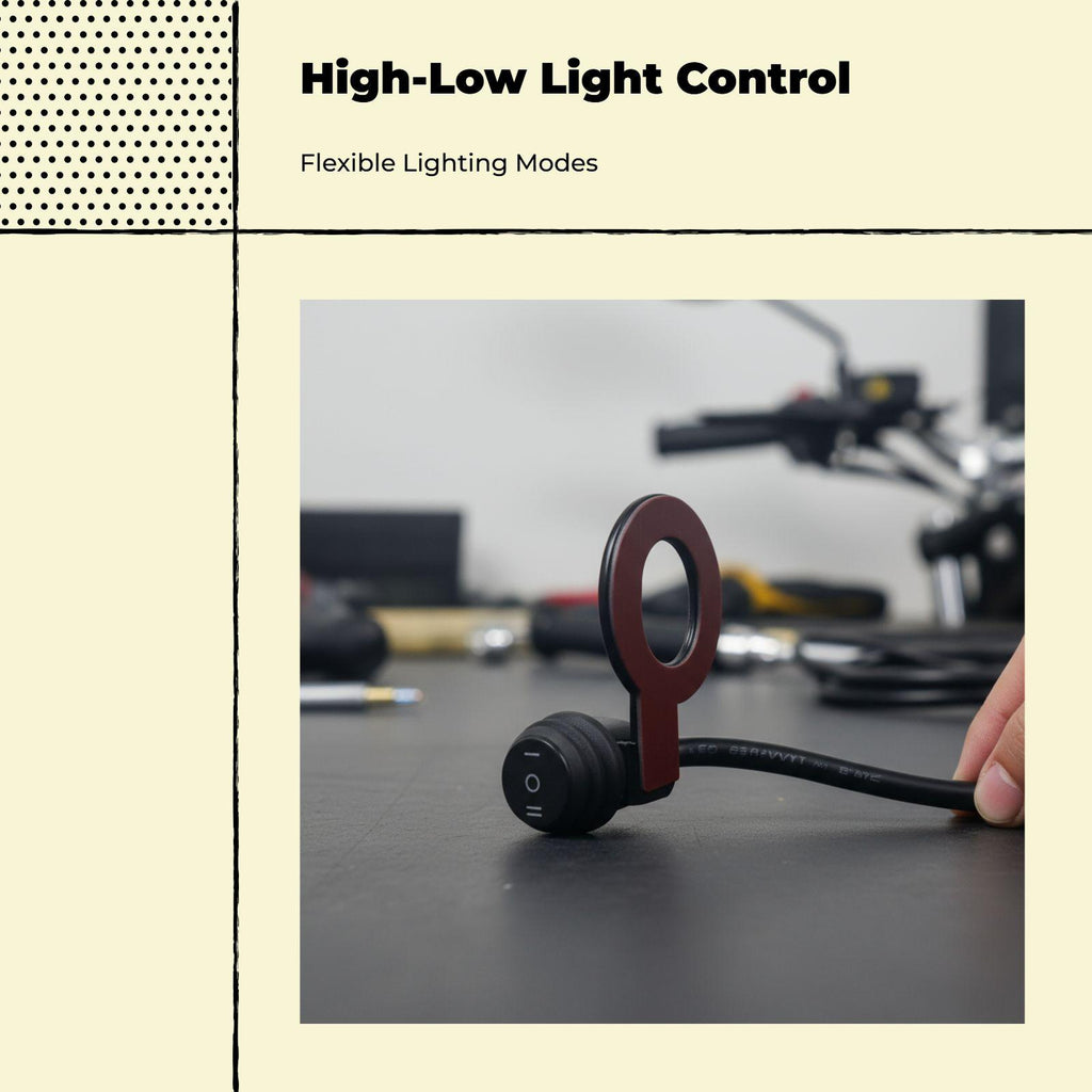 Motorcycle light-emitting diode Headlight, Waterproof Handlebar Control, Universal Fit, High/Low light 3-Position Switch Large Horizontal