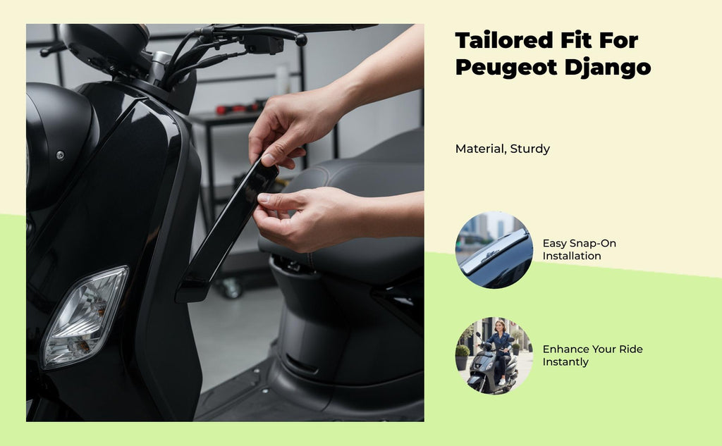 [Sturdy Motorcycle Panel Trim for Peugeot Django] This abrasion-resistant panel trim is designed for both water-cooled and air-cooled Peugeot Django edition, providing dependable protection and stylish decoration for your motorcycle’s front panel. [resilient and Practical] Crafted from robust material, this trim is stain-resistant and enduring, ensuring easy maintenance and long-term use. [Easy Installation and snug-fit] Featuring a userconvenient design, this trim allows for quick installation and offers a snug fit that stays firmly in place during rides and common use. [Versatile Styling choices] Available in matte and metallic finishes, this panel trim enhances your motorcycle’s vintage design while protecting the front panel from abrasions and slight impacts. [perfect for Motorcycle Riders] Perfect for riders looking to enhance, decorate, or protect their Peugeot Django, this accessory suits various riding scenarios such as commuting, touring, and maintenance.