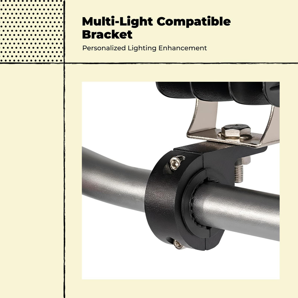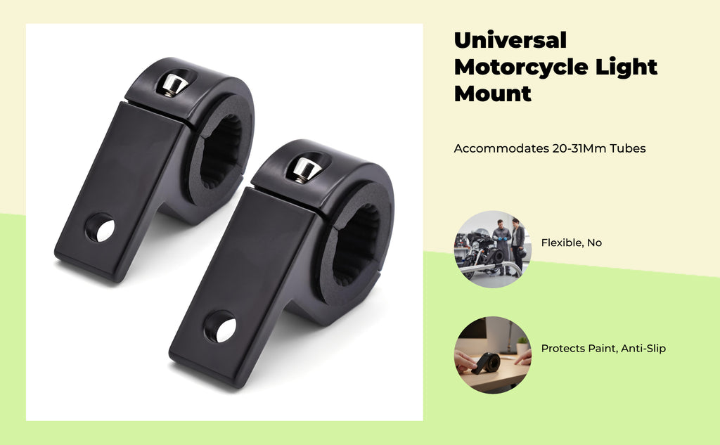 【Sturdy Aluminum Alloy Spotlight Mount】This motorcycle spotlight mount bracket is made from sturdy aluminum alloy, ensuring a secure hold and long performance for a variety of lighting setups. 【Universal Fit for 18-29mm Tubes】Designed to fit 18-29mm round tubes, this bracket is compatible with motorcycles, ATVs, UTVs, awaytrail vehicles, and crash supports, awayering versatile mounting choices. 【Simple Installation and Adjustment】Easy to install and adjust, this bracket allows for quick setup and repositioning, making it perfect for DIY upgrades and modifications. 【Rust-Resistant Hard Anodized Finish】The hard anodized surface protects against rust and oxidation, retaining its appearance and functionality extended period. 【Multi-Functional Use for Various Lights】Suitable for mounting headlamps, fog lights, and work lights, this practical accessory enhances visibility in a range of driving conditions.