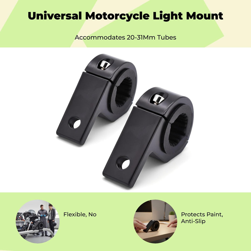 Motorcycle Spotlight Mount Bracket, Aluminum Alloy Tube, accommodates 18-29mm, Universal Black 2 pieces