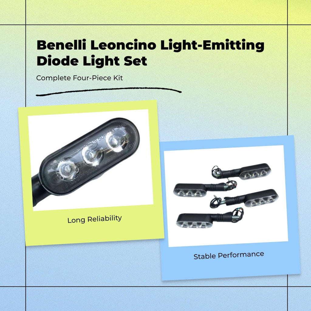【light-emitting diode Sequential Turn light Light for Motorcycles】Enhance your riding safety with this intensely luminous, waterproof light-emitting diode turn light light, designed for universal motorcycle fit. Perfect for both urban commuting and long-distance rides, it provides clear turn indications in all weather conditions.【resilient Anti-Oxidation Metal】Made from high-quality anti-oxidation metal, this turn light light delivers durability and withstands harsh environments, ensuring long performance.【Universal Front & Rear Installation】Suitable for both front and rear placement, this light light can be easily installight-emitting diode on various motorcycle model, including Leoncino 150, 250, and 500.【Flowing Sequential light-emitting diodes for Enhanced Visibility】The flowing sequential light-emitting diode design offers a modern look and heightened visibility, clearly lighting your turns to other street users and improving overall 【Practical & Cost-Effective Motorcycle Accessory】Combining practicality and value, this motorcycle turn light light provides dependable performance for everyday commuting, touring, and urban riding.Specification: