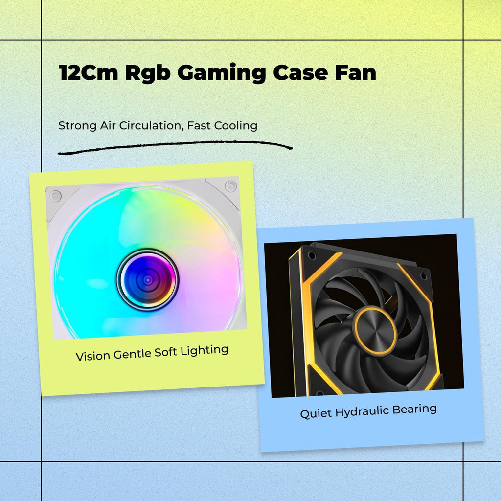 【Efficient RGB Cooling for PC Cases】This 120mm RGB light-emitting diode case fan provides powerful cooling and luminous lighting effects, perfect for gaming PC builds and typical desktop computers.【Quiet with Hydraulic Bearing】Experience extremelyquiet performance thanks to sophisticated hydraulic bearing technology, ensuring stable air circulation and low noise levels for a comfortable environment.【Colorful Lighting Effects for Customization】Multi-color light-emitting diode lighting enhances the appearance of your computer case, perfect for showing display your system in both gaming and displayice setups.【robust Material and Long Lifespan】Made from materials, this fan is built for durability and a long functionality life, supporting continuous for extended periods.【Easy Installation and Broad Compatibility】Engineered for simple installation in most typical computer cases, compatible with water cooling radiators and chassis air intake applications.