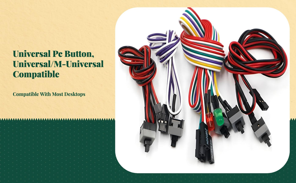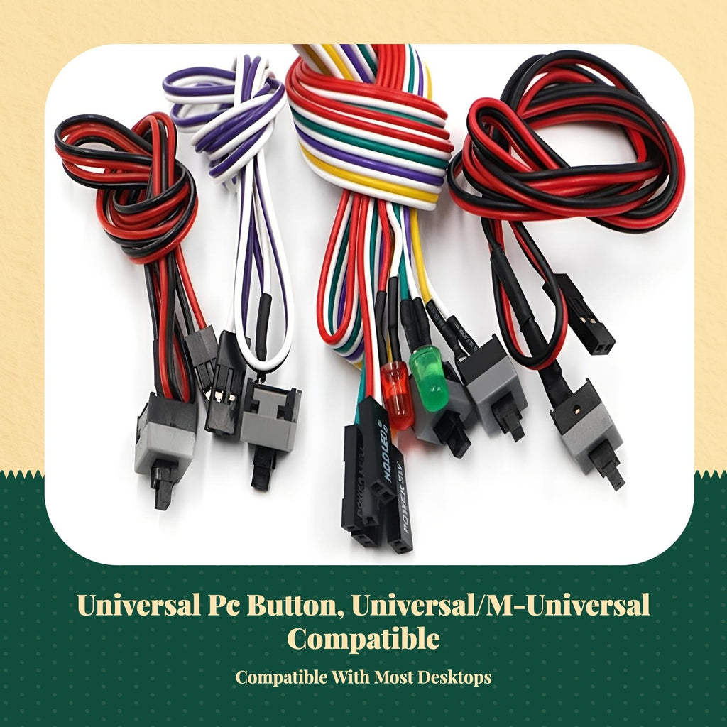 [Double Button Power Button with Display Light] This PC case power button features double buttons for power and reset functions, equipped with a clear display light light for easy condition recognition, making it perfect for desktop setups and gaming environments. [High-Quality Material] Made from materials, this button ensures durability and dependable performance for common use in most environments. [Strong Practicality and Compatibility] Compatible with computer chassis/M-computer chassis, suitable for desktop computers, workstations, and gaming PC cases. [Easy Installation and Replacement] Designed for quick connection and effortless replacement, this power button wire is perfect for upgrading or repairing your computer case. [Adaptable Application] Suitable for office, home, and gaming setups, this button wire supports efficient transmission transmission and system protection.Specification: