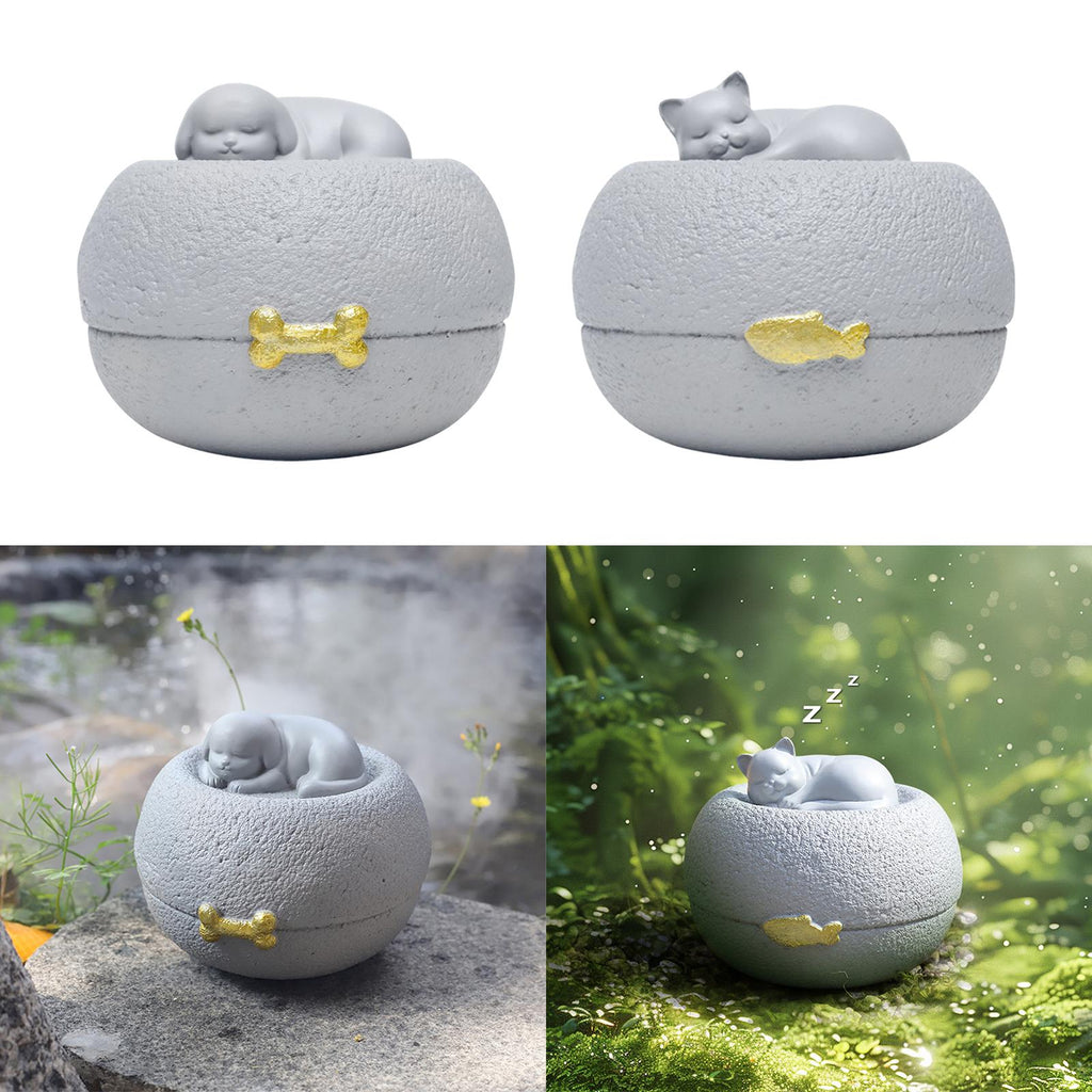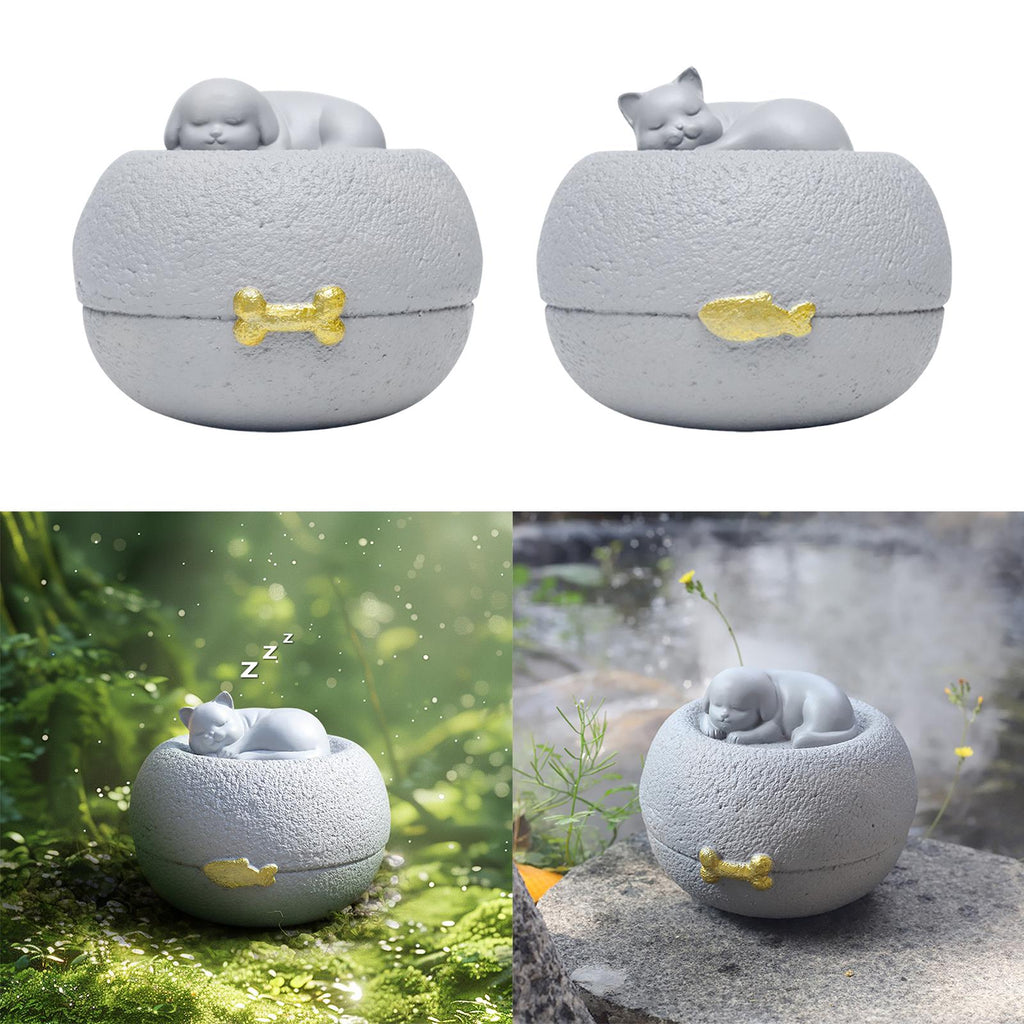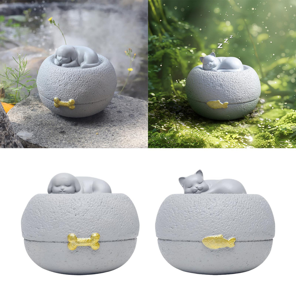 【Adorable Sleeping Dog Design】Featuring a serene sleeping dog sculpture, the urn's charming and rounded design evokes warm memories of your pet friend, making it a comforting keepsake for pet owners