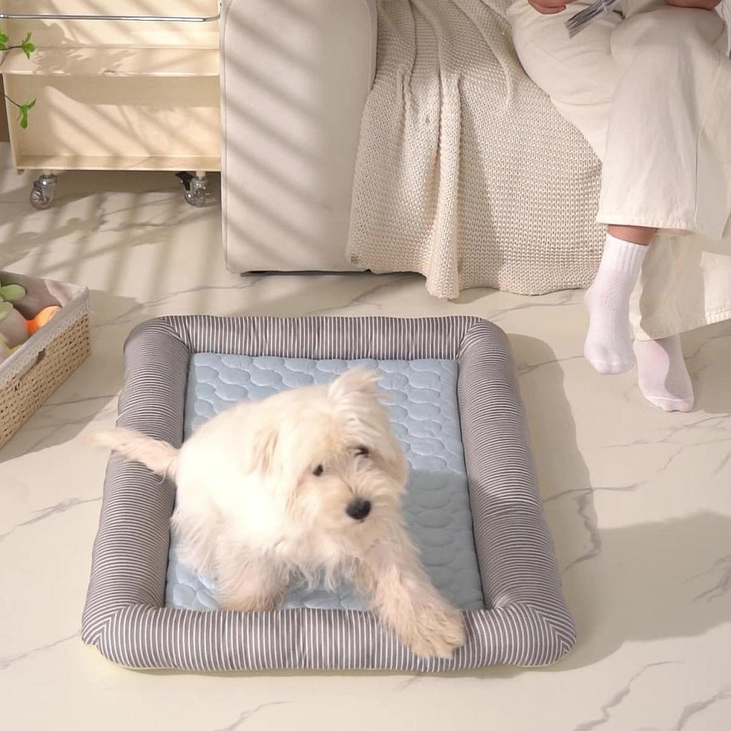 【Materials】: Crafted with PP cotton and icy silk fabrics, this Cooling Mat offers a breathable and comfortable surface for your dog, ensuring they stay cool in the summer and warm in the winter