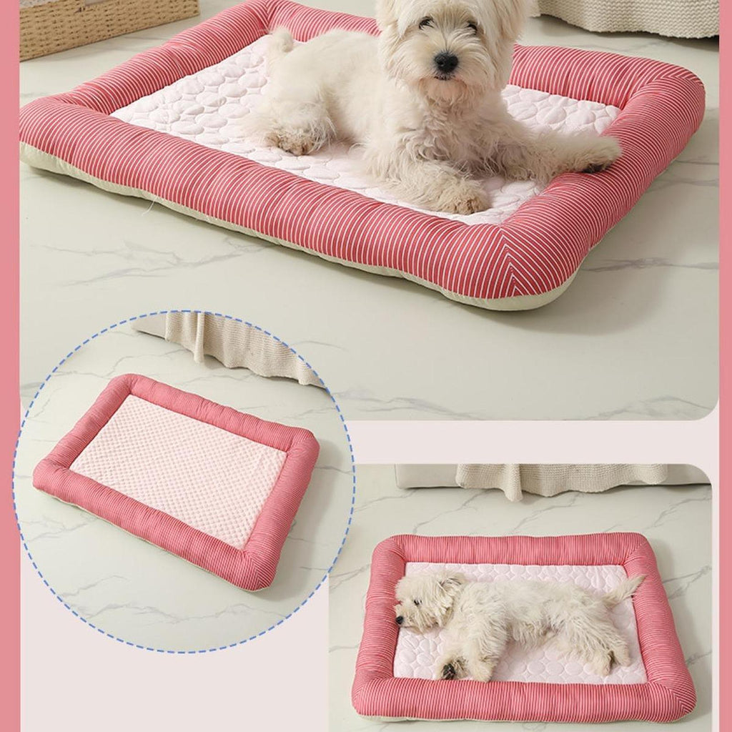 【Materials】: Crafted with PP cotton and icy silk fabrics, this Cooling Mat offers a breathable and comfortable surface for your dog, ensuring they stay cool in the summer and warm in the winter