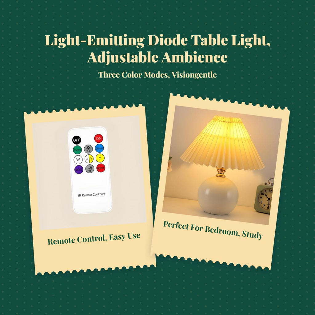[Elegant Pleated Table Lamp for Bedroom and Living Room] This dimmable light-emitting diode table lamp features a pleated lampshade and a sturdy metal base, showcasing a stylish Nordic design that complements any bedside, living room, or hotel setting. [Adjustable Brightness and Color Temperature] Equipped with three color temperature choices and dimmable settings, this lamp offers customizable lighting for studying, relaxing, or creating a warm atmosphere. [Space-Saving and Sturdy Construction] Its space-saving size and fine craftsmanship make it perfect for small spaces, while the metal base ensures durability and stability. [Versatile Decorative Night Lamp] Perfect for bedrooms, children's rooms, hotels, and home offices, this lamp functions as both a practical bedside light and a decorative ambient light. [High-Quality and Cost-Effective Gift Choice] Combining materials with an elegant look, this lamp is a thoughtful gift for housewarmings, birthdays, or special events.