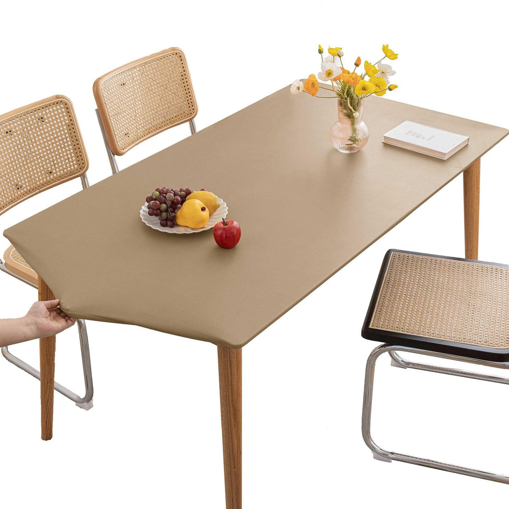 Maxbell PU Leather Table Cloth Stretch Table Protector Reusable Rectangle Tablecloth 70cmx120cm Light Coffee