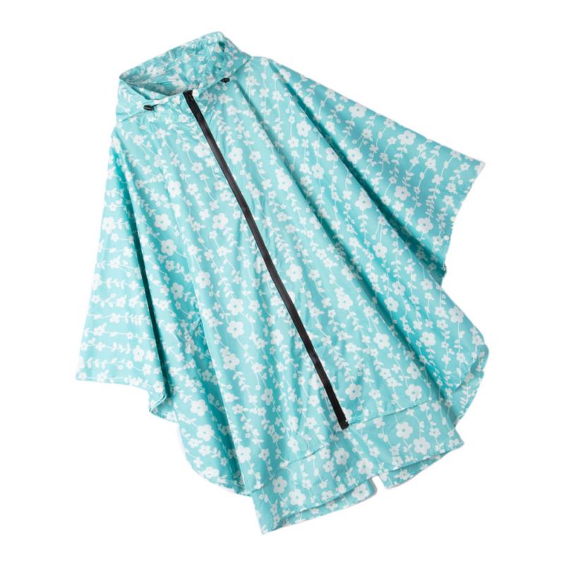 Zipper Closure, The Rain Poncho has a piece of elastic inside that you can pull tighter around the hood.
