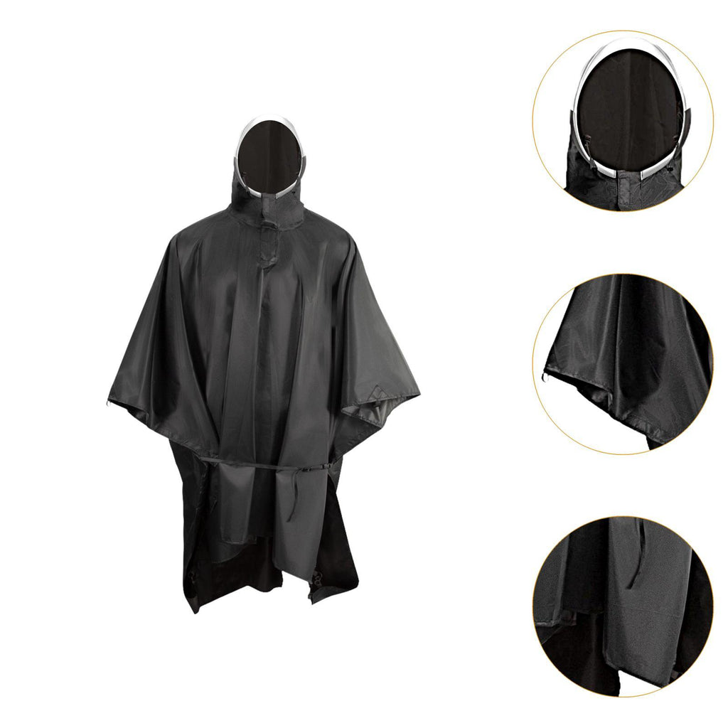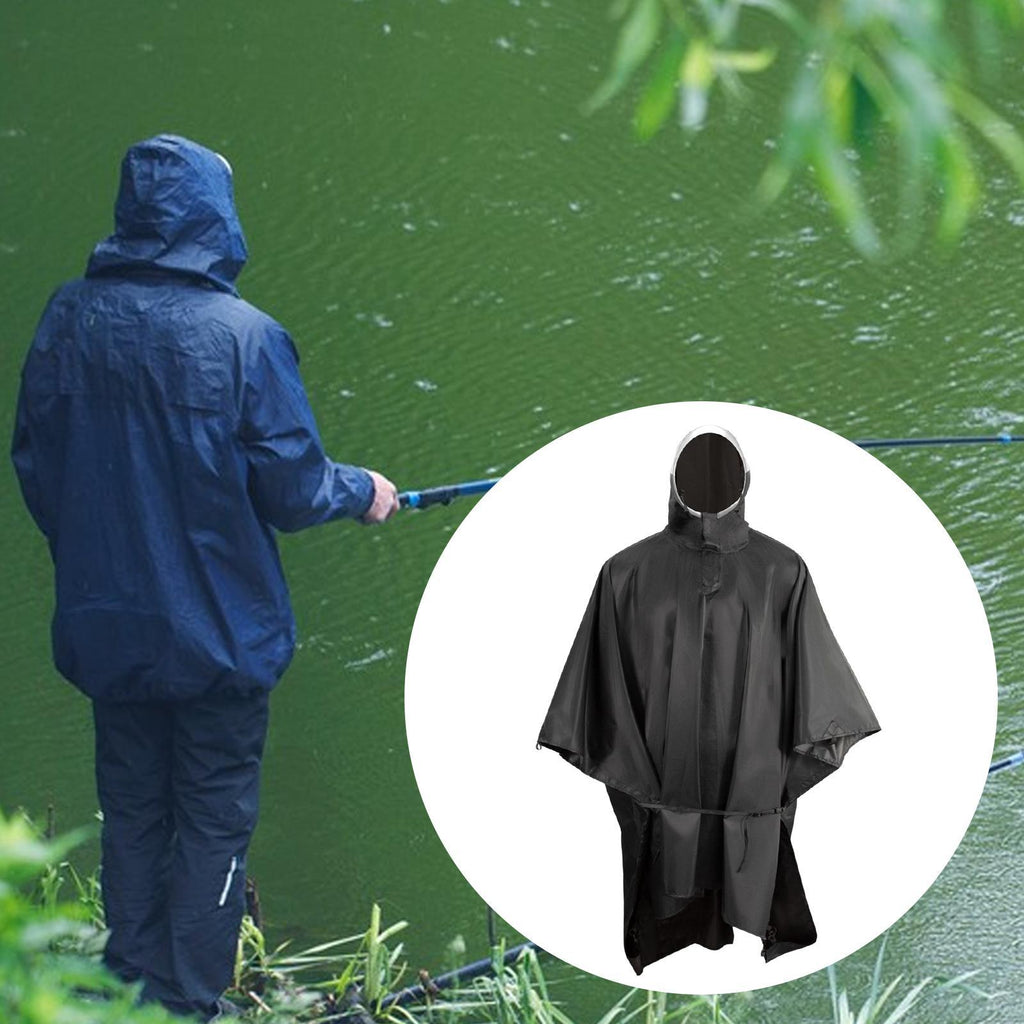 Maxbell Rain Poncho with Hood Lightweight 3 in 1 Rain Coat for Fishing Adults Travel Black