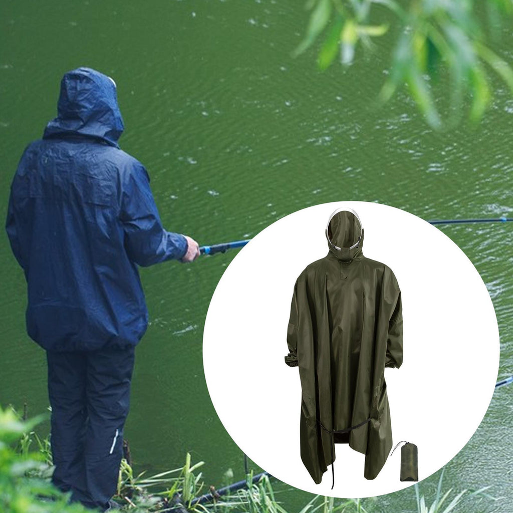 Maxbell Rain Poncho with Hood Lightweight 3 in 1 Rain Coat for Fishing Adults Travel Green