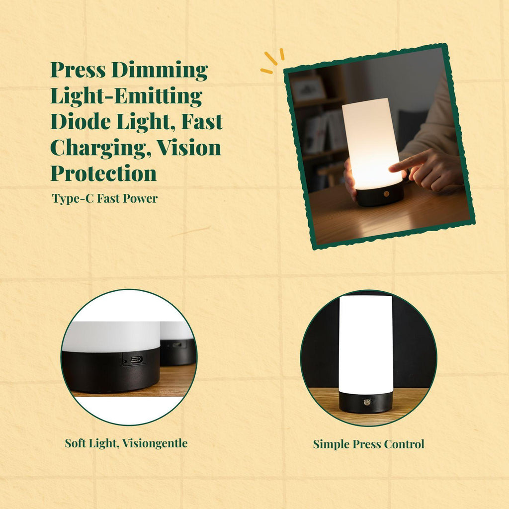 【Adaptable light-emitting diode Rechargeable Table Lamp】Combining night light, mood lighting, and desk lamp functions, this versatile lamp is perfect for taverns, outdoor camping, and home décor, providing luminous lighting and intelligent press control.【Dimmable press Control】Effortlessly adjust brightness with the responsive press mechanism, perfect for setting the perfect atmosphere for dining, studying, or relaxing in the living room, bedroom, or bar.【Portable & Cordless Design】Equipped with a rechargeable battery and charging port adapter, this lamp is easy to move and use anywhere, whether at trade shows, events, or outdoors.【Creative Modern Décor】Featuring a sleek, contemporary look, it complements a variety of environments and enhances the atmosphere in restaurants, taverns, and home spaces.【High Quality & Practical】Constructed from sturdy materials, this lamp offers superb practicality and value, making it suitable for presentations and business events.Specification: