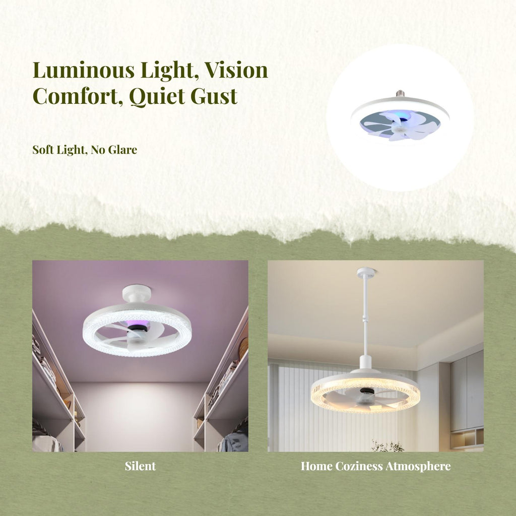 【Multi-Functional Ceiling Fan Light】Combining remote control E27 ceiling fan light and dimmable light-emitting diode, this fixture is perfect for bedrooms, kitchens, and small rooms, offering adjustable lighting and air circulation for a comfortable environment.【Modern and Space-Saving Design】Thin, lowshape, and sleek, this ceiling fan light suits perfectly in modern interiors, maximizing space in living rooms, bathrooms, and hallways.【Adjustable Lighting and Fan Speeds】Features three fan speeds and dimmable light-emitting diode lighting, allowing you to customize brightness and ventilation to suit different situations and moods.【Easy Installation and Energy Saving】Screw-in E27 base ensures quick installation, while energy-saving light-emitting diode technology reduces power consumption and delivers long performance.【Quiet and vision Protection】Designed for quiet this fan light creates a peaceful atmosphere and offers gentle, visiongentle lighting for common use.Specification: