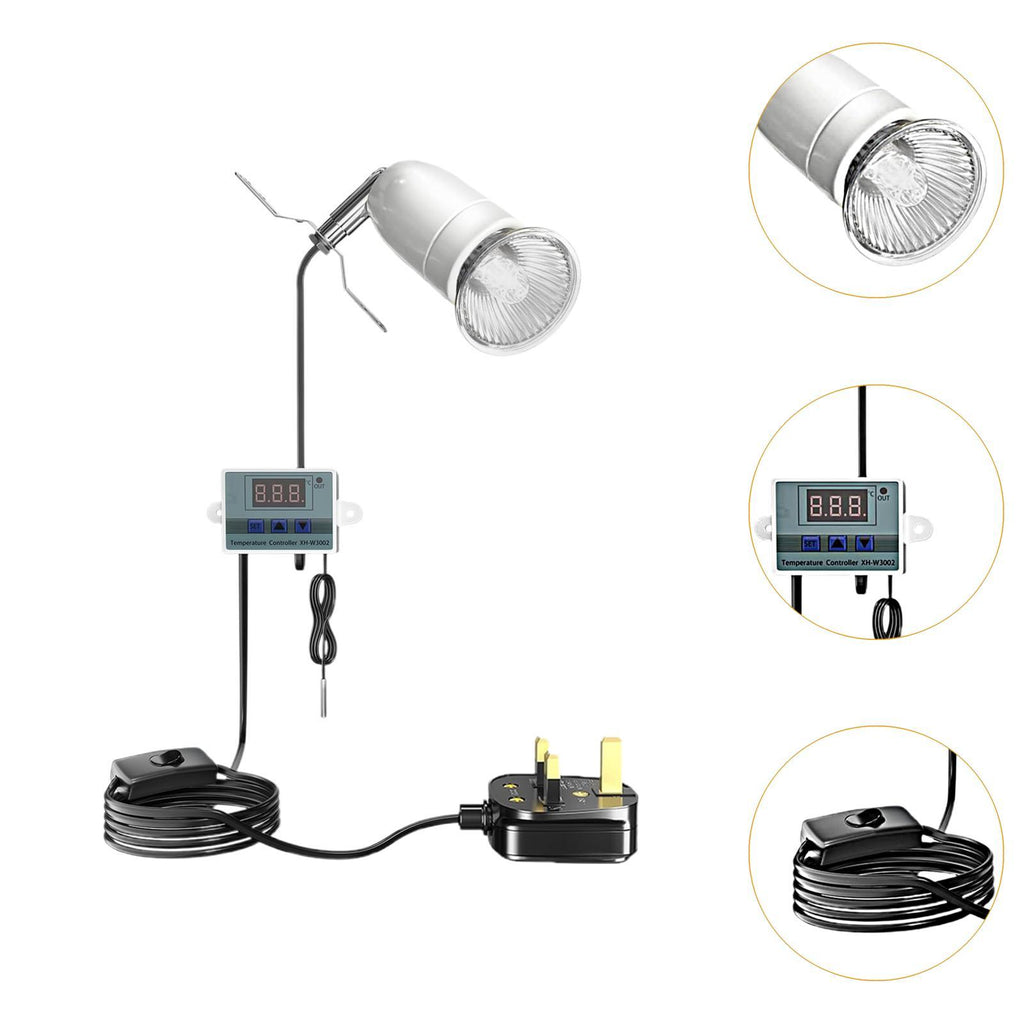 【Digital Temperature Controller】: Reptile Lamp Stand is equipped with a metal waterproof that accurately ambient temperature and transmits the information to a digital display controller. This allows the user to adjust the temperature according to the needs of the reptile, ensuring an living environment