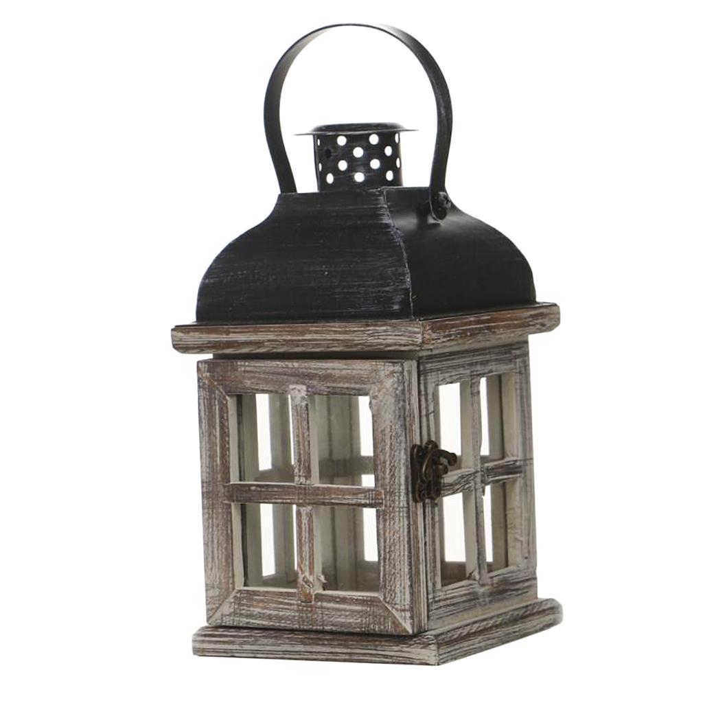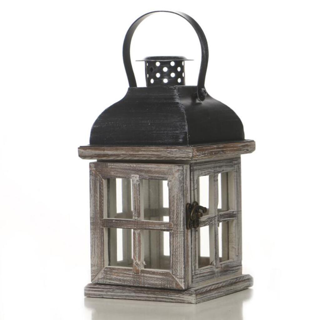 - Wooden lantern comes with a sturdy metal hanging loop