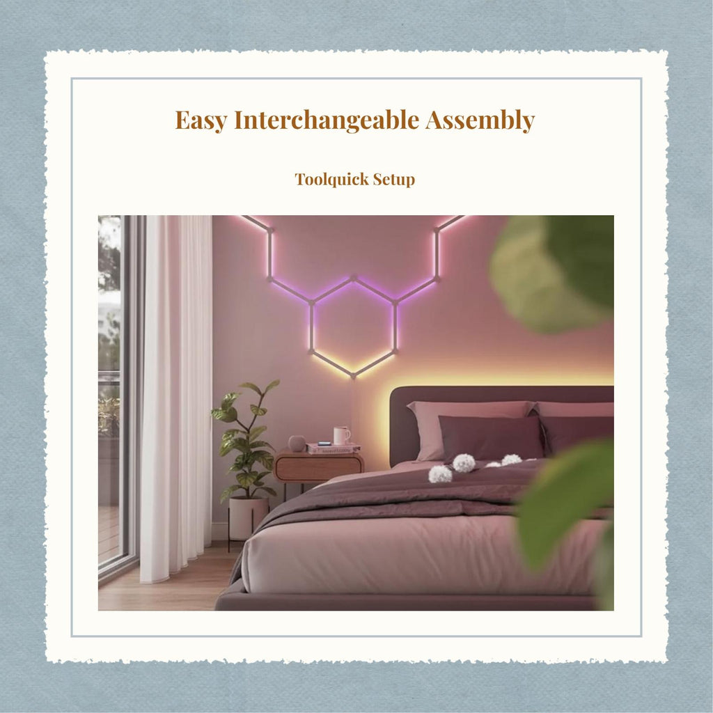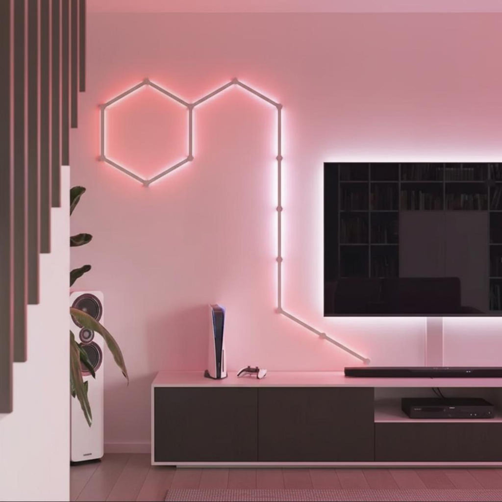 【Smart RGB Gaming Lights for Bedroom】Enhance your gaming room or bedroom with these RGB smart light-emitting diode strip lights, offering customizable atmospheric lighting and lively color-changing effects for a modern atmosphere.【Adaptable Home Decor Lighting】Perfect for living rooms, kids' rooms, studies, and parties, these light-emitting diode wall lights create an energetic mood with adjustable brightness and multiple lighting modes.【Easy Installation & DIY Design】Interchangeable panels and mounting allow for flexible installation and creative DIY arrangements, making it easy to personalize your space.【Smart Control】Enjoy convenient smart control via remote or app, with features like timer, music sync, and easy customization.【sturdy Practical】Made from sturdy PC material, these light-emitting diode lights offer practicality, energy effectiveness, and long performance for commonplace use.Specification:
