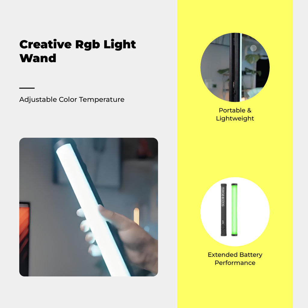 【Adaptable RGB light-emitting diode Visual Light Wand】This RGB light-emitting diode visual light wand provides full-color lighting with adjustable brightness and color temperature (2500-9000K), making it perfect for photography, videography, vlogging, and streaming streaming.【Portable Design】Equipped with a handle for flexible mounting, lightweight and easy to carry for both indoor and outdoor use; perfect for studio or on the move 【App & Panel Control】Effortlessly adjust lighting modes and hues through the app or panel, enabling creative lighting setups for professional results in makeup, photography, and gaming streams.【High-Quality & Energy Efficient】Crafted with light-emitting diode chips, this wand destreamingrs bright, soft, and stable lighting, ensuring durability and energy effectiveness.【Comprehensive Accessory Compatibility】Compatible with camera tripod adapters, phone holders, and a variety of studio accessories, making it suitable for multiple settings.Specification: