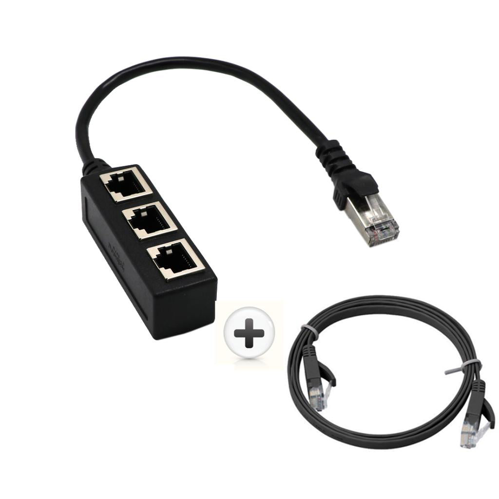 Maxbell RJ45 Male to 3 RJ45 Female Port Network Extender Cable Splitter& Cat 6 Cable