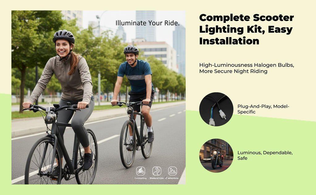 【Enhanced Safety and Visibility】This scooter light kit features light-emitting diode front lights, rear lights, and turn indicators for enhanced brightness and warning capability during nighttime riding and commuting.【Robust and Waterproof Design】Made from high-quality materials, the lights are waterproof and suitable for various weather conditions, ensuring enduring durability.【Easy Installation and Universal Compatibility】basic plug design enables quick installation and is compatible with most electric scooters and mopeds.【Multi-Functional Lighting Modes】Includes front and rear lights, turn indicators, and brake warning functions, delivering comprehensive lighting for enhanced safety.【Practical and Cost-Effective Accessory】A complete lighting kit for scooters, offering strong practicality and outstanding value for common use and replacement.Specification: