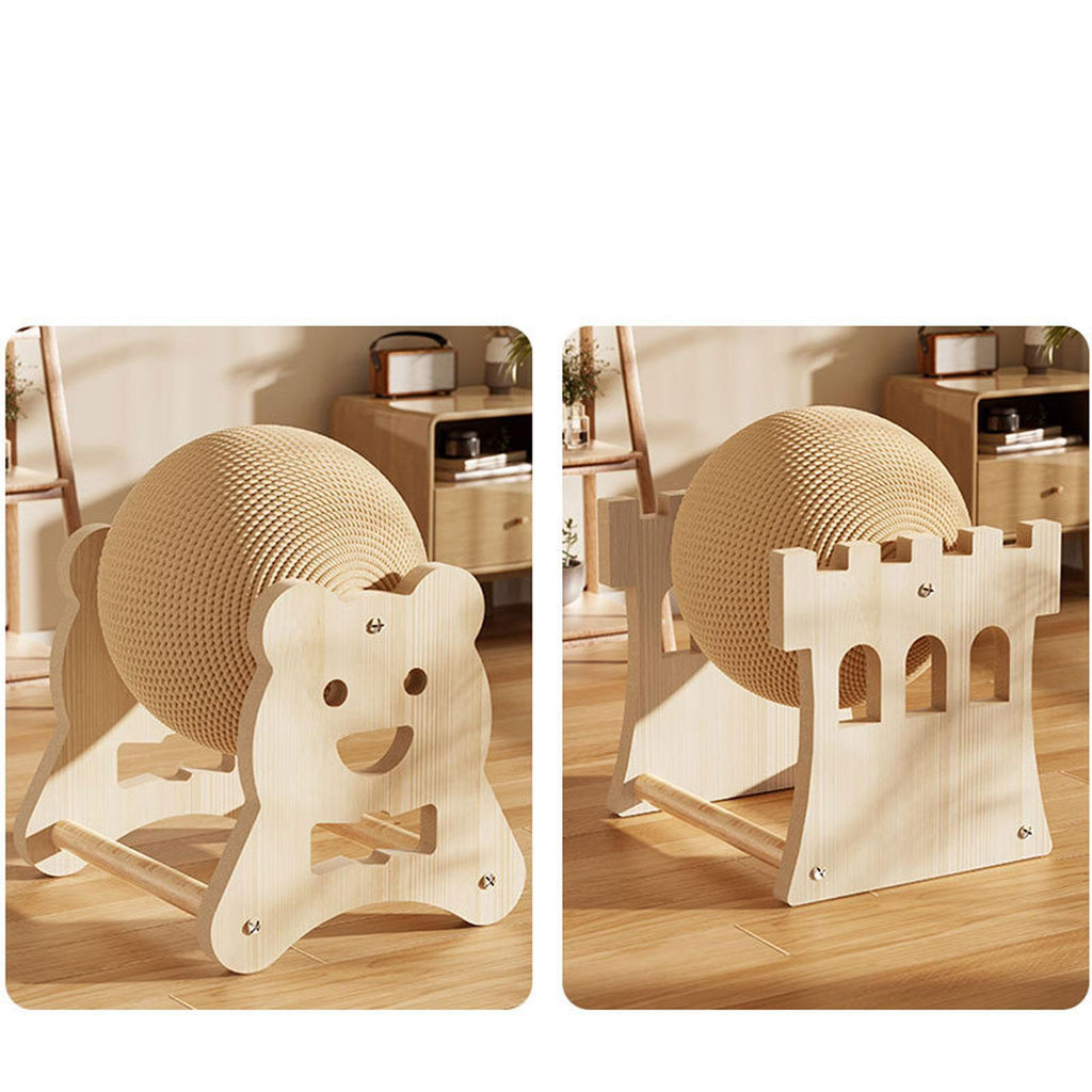 【Materials】: Crafted from sturdy wood and sisal, this cat scratching ball is builts to last, providing long term entertainment and claw care for your pet