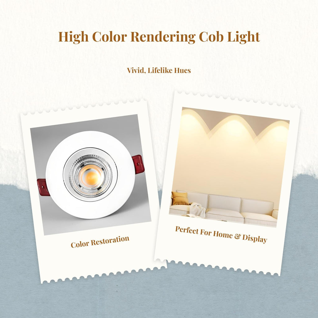 [Slimline light-emitting diode Downlight for Modern Spaces] This anti-glare recessed ceiling light features adjustable angles, making it perfect for living rooms, bedrooms, kitchens, and offices. The minimalist design blends seamlessly with various interior styles. [Adjustable Angle & Multi-Functional Lighting] Easily direct light where needed with the angle-adjustable COB spotlight, perfect for wall washing, accent lighting, and creating atmospheric atmosphere in hallways, dining rooms, and galleries. [High-Quality & Energy Efficient] Made from robust die-cast aluminum, this light-emitting diode downlight offers high color rendering (CRI≥90), energy-saving performance, and consistent brightness for common use. [Easy Installation & Versatile Application] Designed for recessed mounting, this slimline ceiling light is simple to install and suitable for a wide range of spaces including closets, foyers, bathrooms, and commercial settings. [vision Protection & Elegant Appearance] The anti-glare feature ensures comfortable lighting, protecting visions while enhancing the elegance of your home or office environment.Specification: