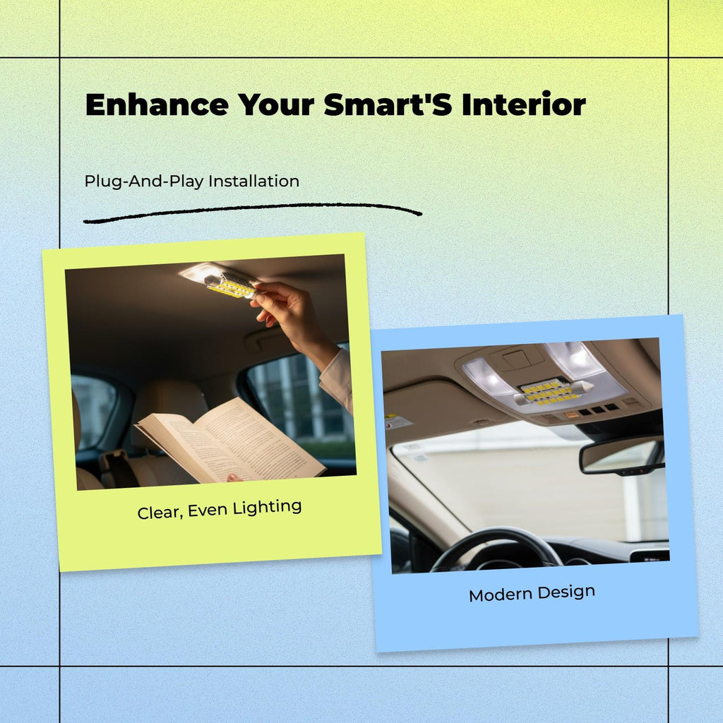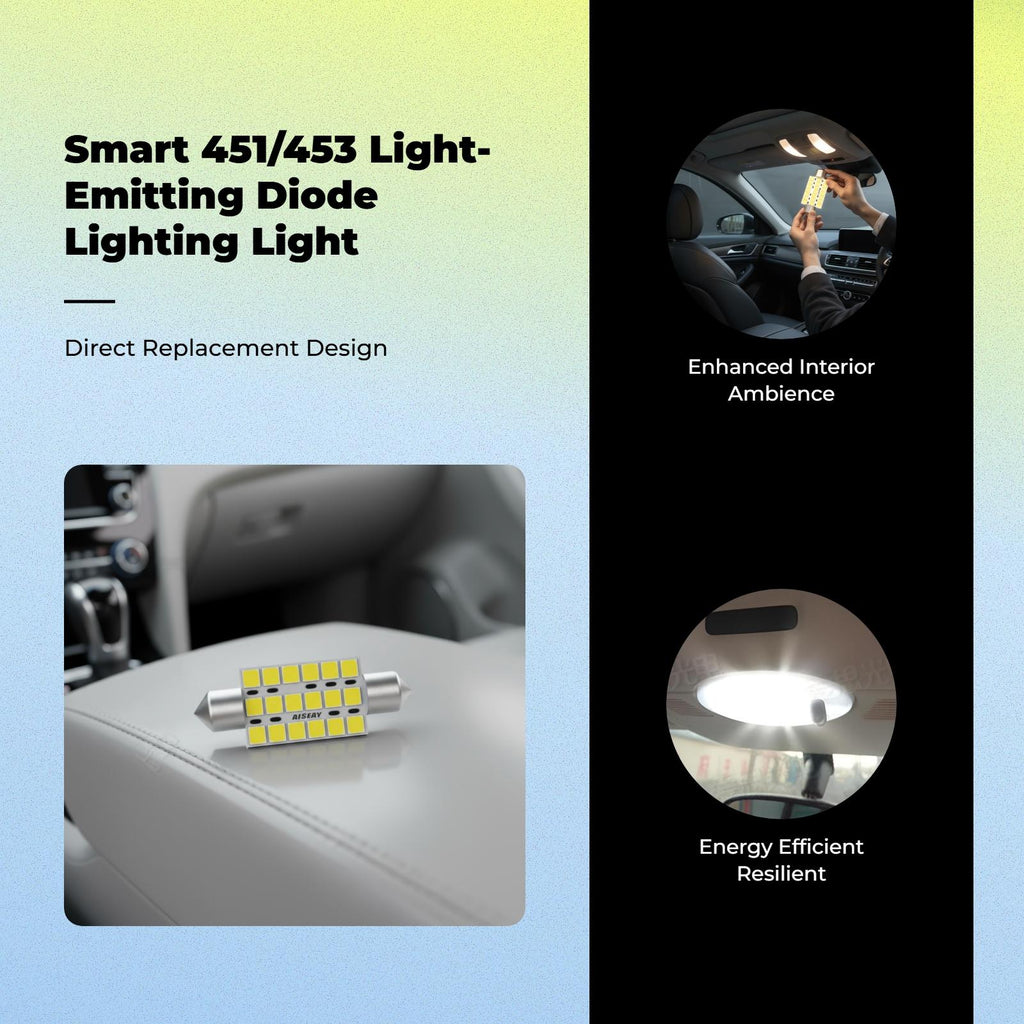 【High Brightness light-emitting diode Car Interior Light】enhance your Smart car with this light-emitting diode dome light and license plate light, delivering lighting for night driving and enhancing your interior atmosphere.【Easy Installation and Direct Replacement】Specifically designed for Smart Fortwo 451/453, this kit offers a plug-and-play installation, making DIY enhances and replacements simple and hassle【Error and resilient PC Material】Engineered with CAN-BUS error technology and resilient (PC) material, this interior light guarantees dependable performance and long use.【Versatile Compatibility for Multiple sedan】Compatible with Smart Fortwo coupe/cabriolet 450/451/453 and Forfour 453, this kit meets a wide range of interior lighting requirements.【Practical and Cost-Effective enhance】Experience high-quality lighting with practicality and value, perfect for enhancing your car’s interior environment and license plate visibility.Specification: