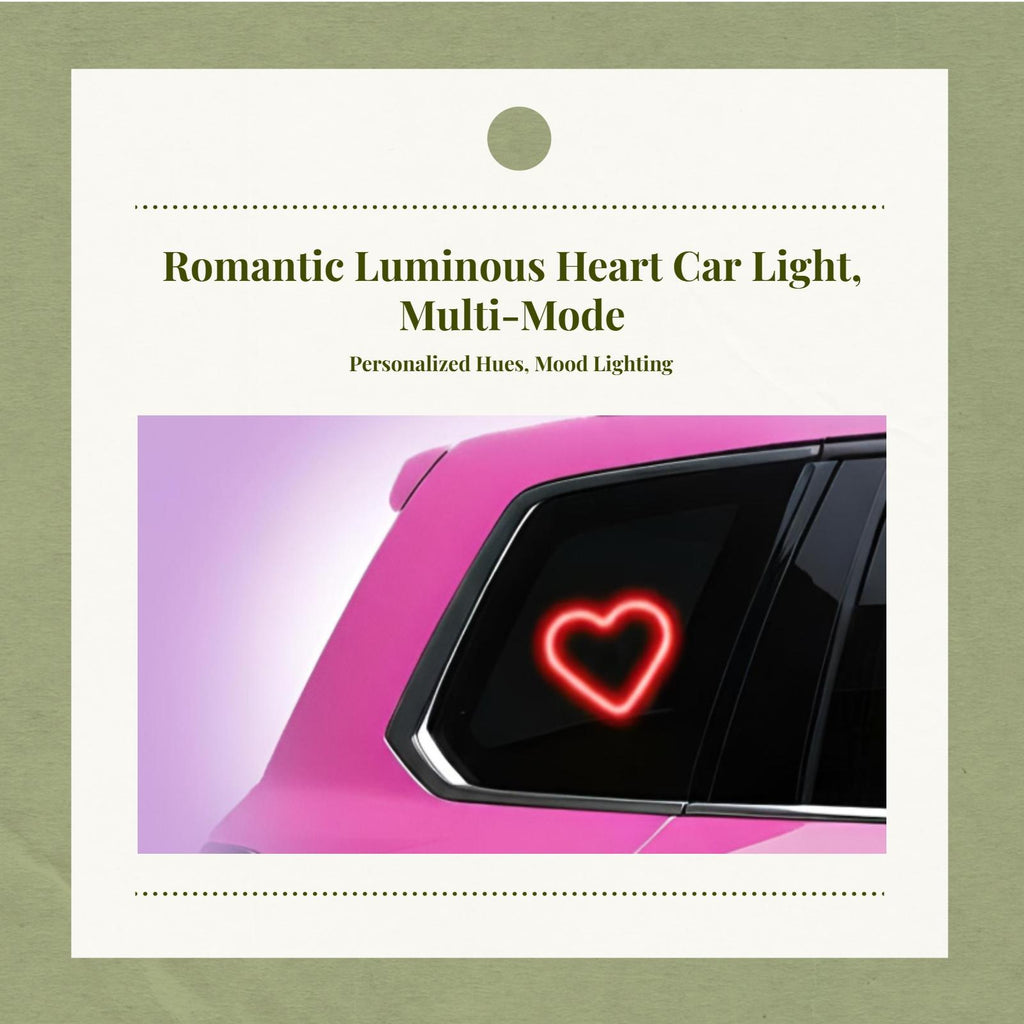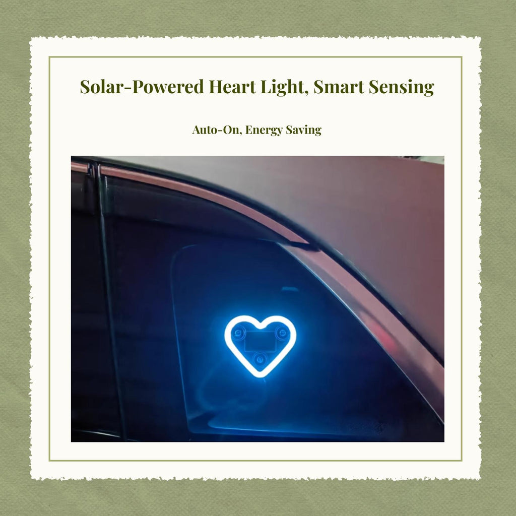 [Solar Heart light-emitting diode Car Mood Light] This luminous heart-shaped light is designed for car interior decoration, creating a romantic and lively atmosphere for night drives, family trips on the highway, and common commutes. [Easy Installation] No wiring needed—just attach it to triangular or glass surfaces with suction cups. The solar-powered design powers up automatically during the day and illuminates at night. [Multiple Lighting Modes & Waterproof] Features 4 adjustable lighting modes, IP65 waterproof, and high-brightness light-emitting diodes, making it suitable for use on rainy, snowy, or foggy days. [Universal Fit & Practical Gift] Compatible with various car vehicle, this mood light makes a thoughtful gift for partners, friends, and family, perfect for events like Valentine's Day or Christmas. [resilient Material] Made from acrylic, this car accessory is energy-saving and sturdy, adding a distinctive accent to your vehicle's interior.Specification: