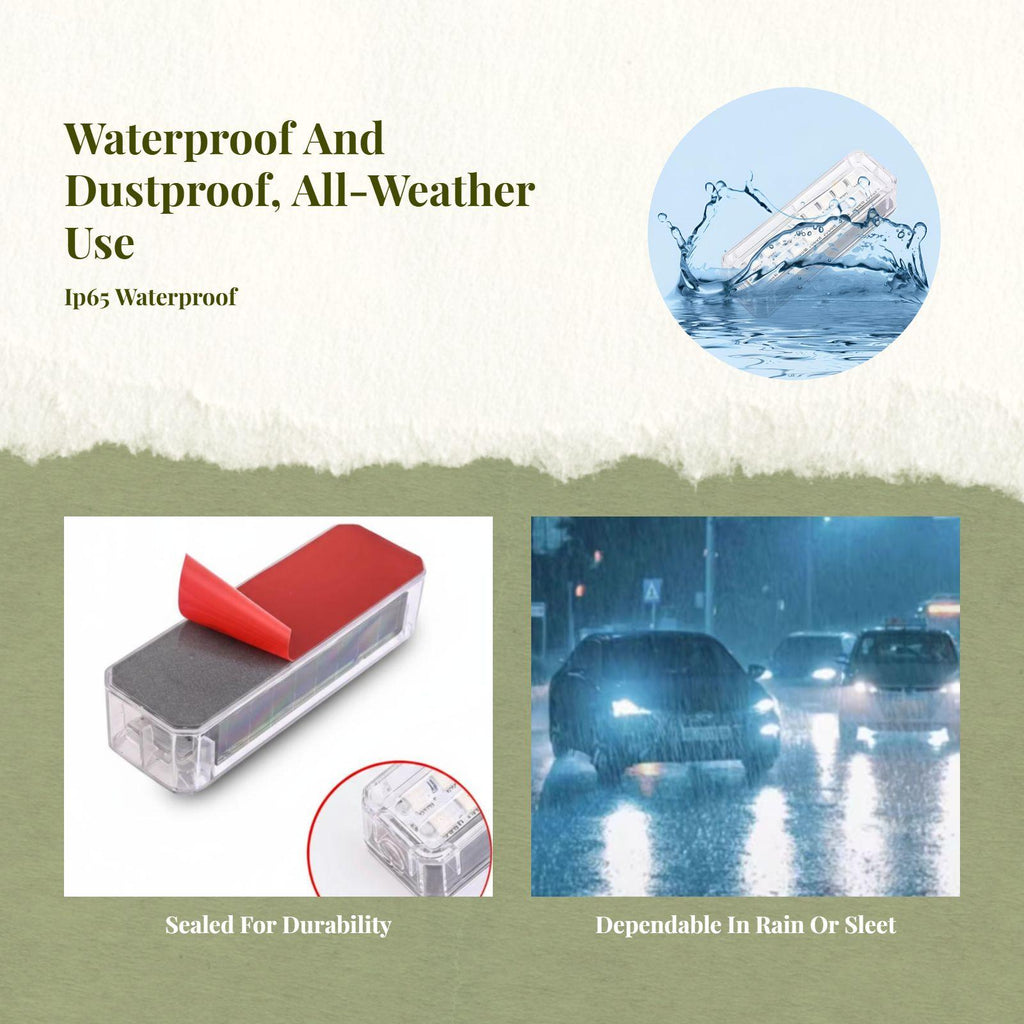 【Solar Warning Light for Car 】This light-emitting diode solar warning light provides high visibility and strong alerts for vehicles, improving during night driving and roadside emergencies. 【Easy Installation】Universally compatible, this blinker is simple to install on car grilles, SUVs, and buses, making it an perfect exterior accessory. 【Waterproof and sturdy】Crafted from quality materials, this light is waterproof, dustproof, and resistant to wear, ensuring dependable performance in all weather conditions. 【Multiple blink Modes extremelyluminous】Equipped with 3 blink modes and brilliant light-emitting diodes for efficient warning, long-distance visibility, and rear-end collision. 【Energy Efficient sun energy】Powered by solar energy, this light-emitting diode warning light features low power consumption and automatic lighting, making it suitable for highway travel and emergencies.Specification: