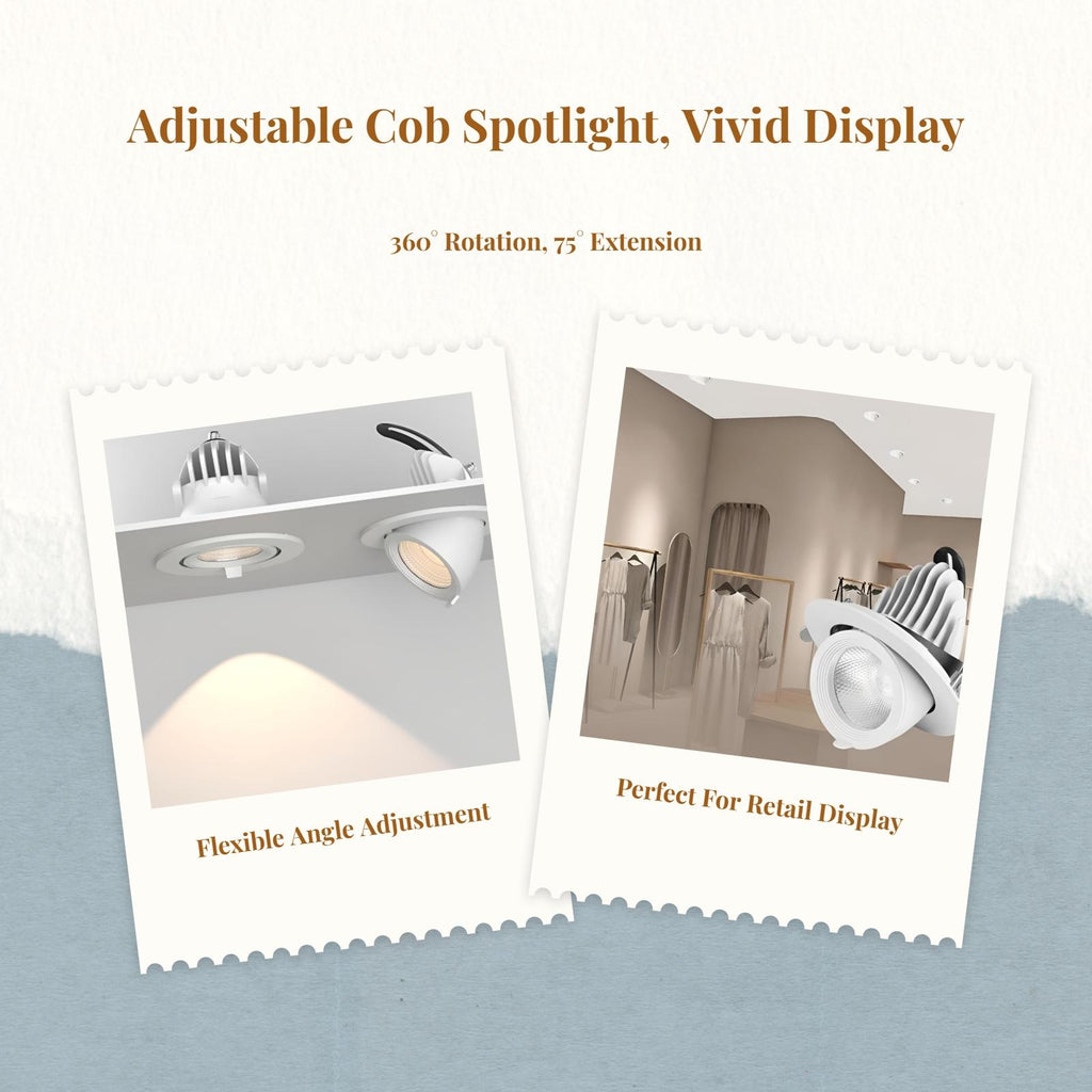 【Adaptable Adjustable Spotlight for Shops】This recessed light-emitting diode downlight features a versatile design, adjustable angles, and high brightness, making it perfect for clothing stores, boutiques, and commercial spaces. 【High-Quality and sturdy】Made with materials, this spotlight delivers long performance and energy effectiveness, perfect for continuous use in retail environments. 【Practical and Cost-Effective】Designed for easy installation and low maintenance, this light-emitting diode shop light provides great value and helps overall operating costs. 【Enhanced Lighting Experience】innovative lighting technology ensures uniform lighting, brightens dark corners, and creates affection inviting atmosphere in your retail space. 【Flexible Application】perfect for accent lighting, uplighting, and general indoor lighting in shops, offices, and workshops.Specification:
