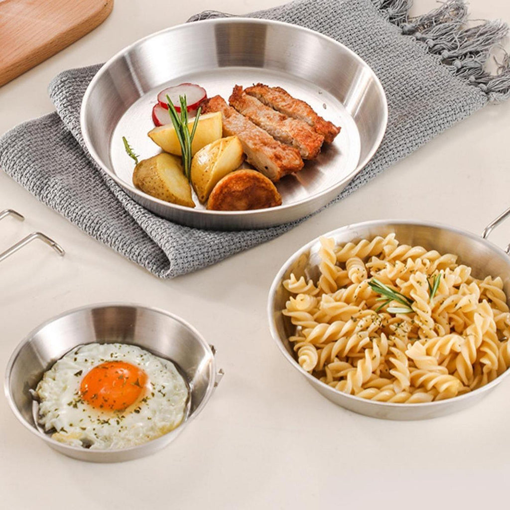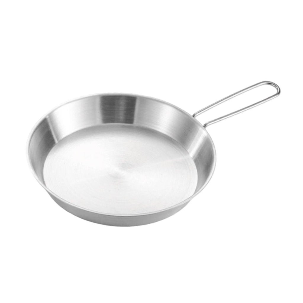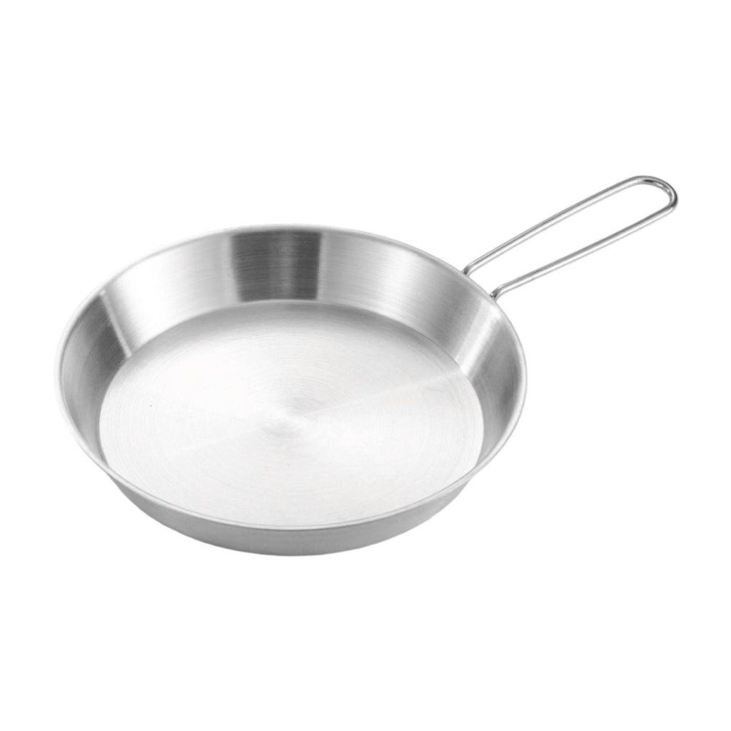 【Stainless Steel Construction】: Stainless Steel Camping Fry Pan is made of stainless steel and is designed to withstand the rigors of outdoor adventures, providing a rugged and wear resistant solution for your cooking needs