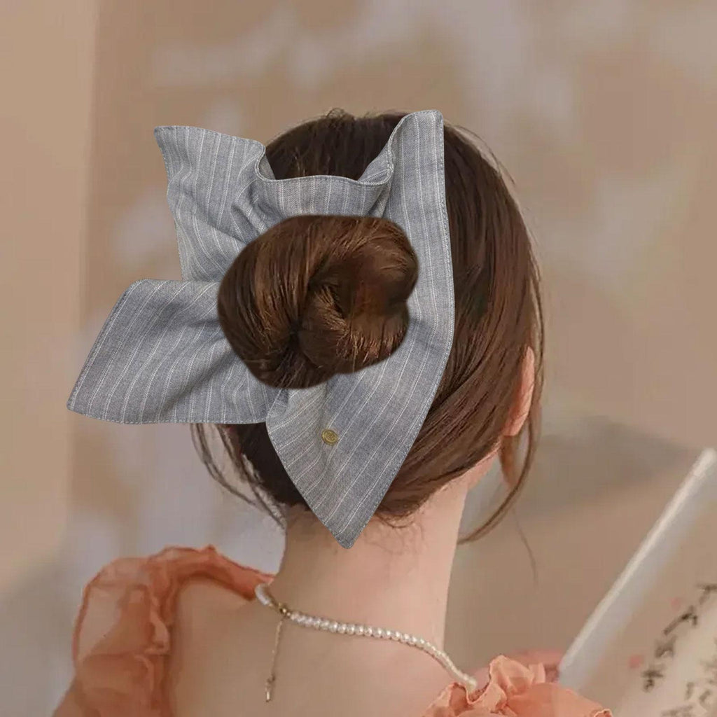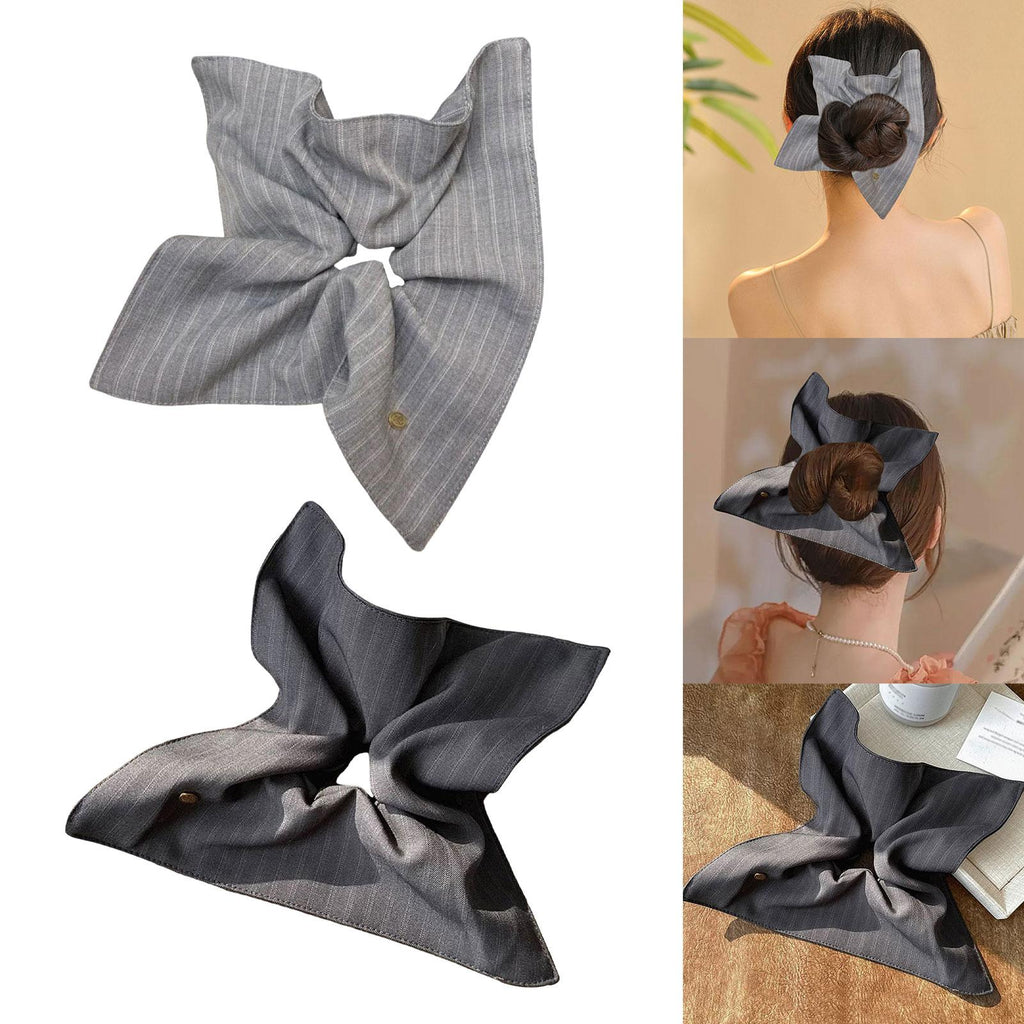 Maxbell Striped Hair Scrunchie Fashionable Hair Rope for Commuting Dance Party Woman Light Grey