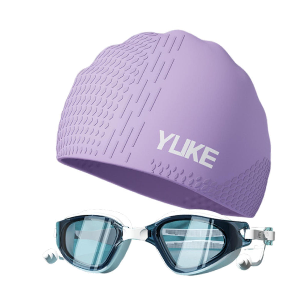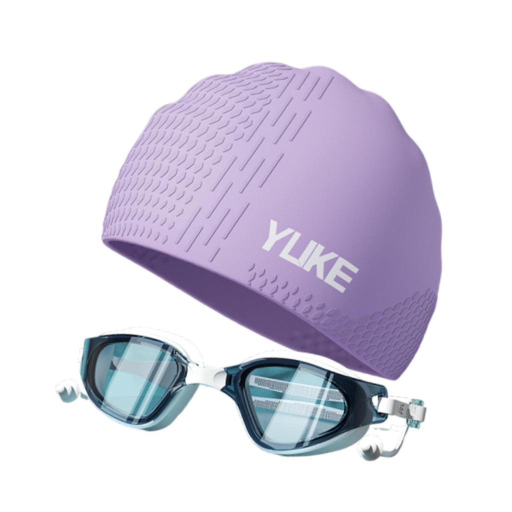 Maxbell Swim Goggles & Swim Cap Set Eyewear Comfortable Lightweight Swimming Goggles Purple