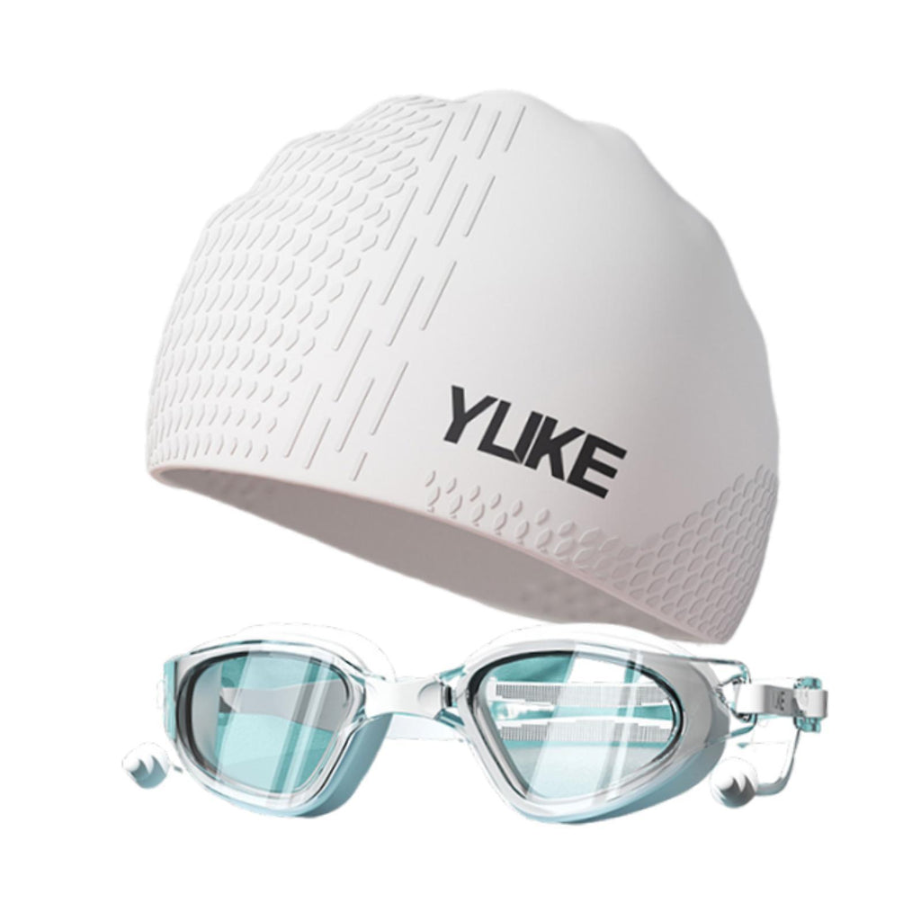Maxbell Swim Goggles & Swim Cap Set Eyewear Comfortable Lightweight Swimming Goggles White