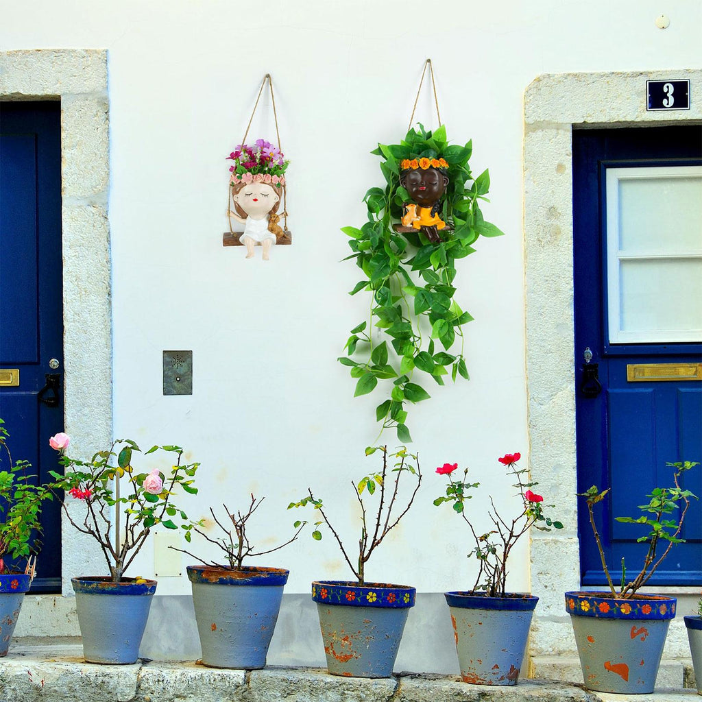 【Charming Design】: This hanging planter features a unique girl pattern swing rope design, adding a touch of whimsical decoration to indoor and outdoor space