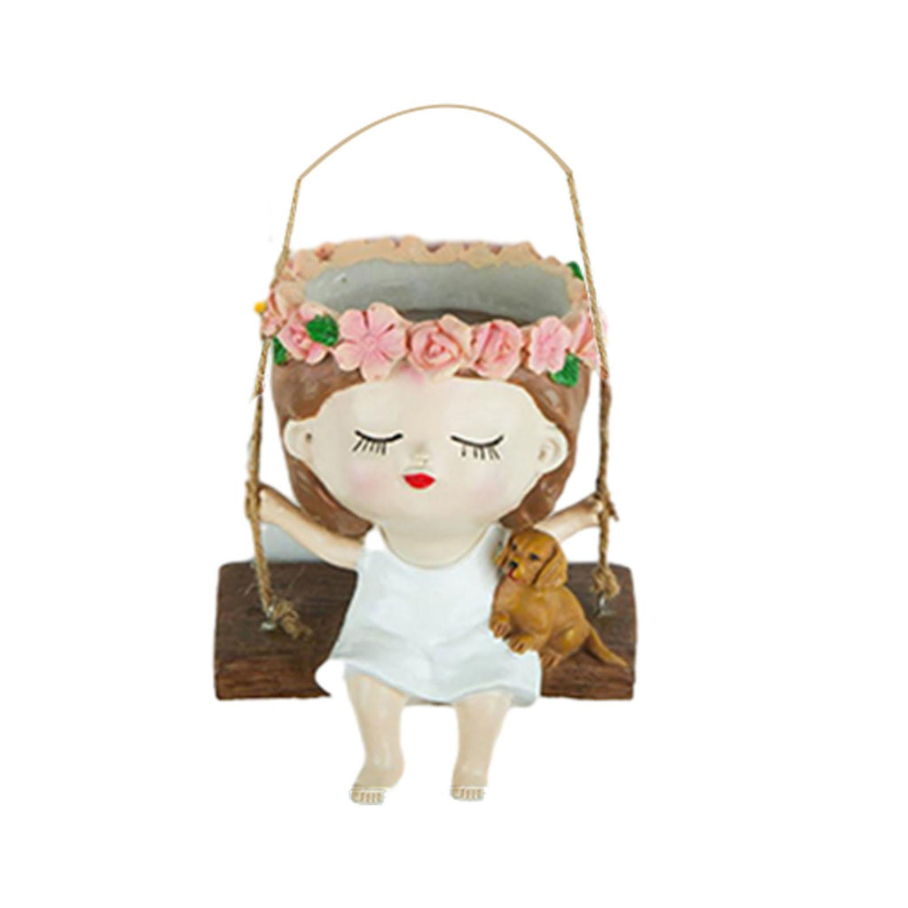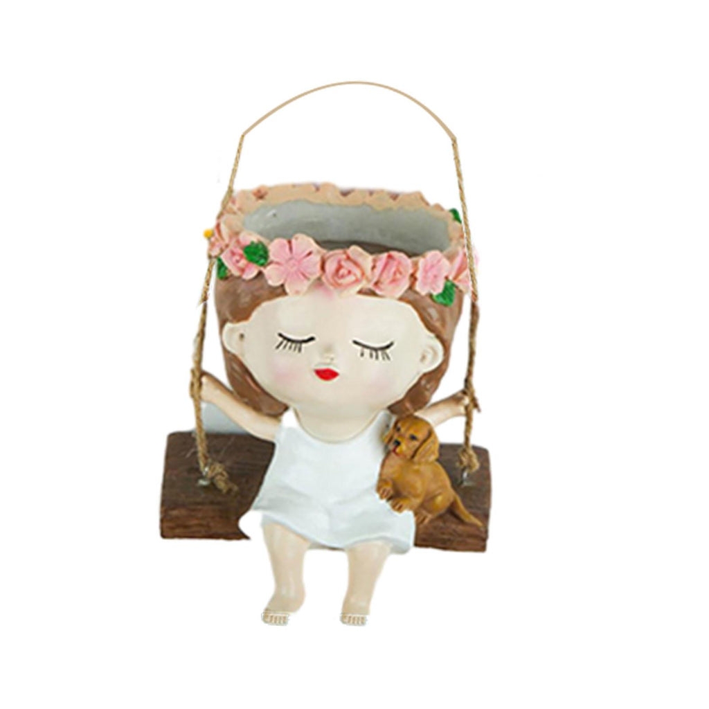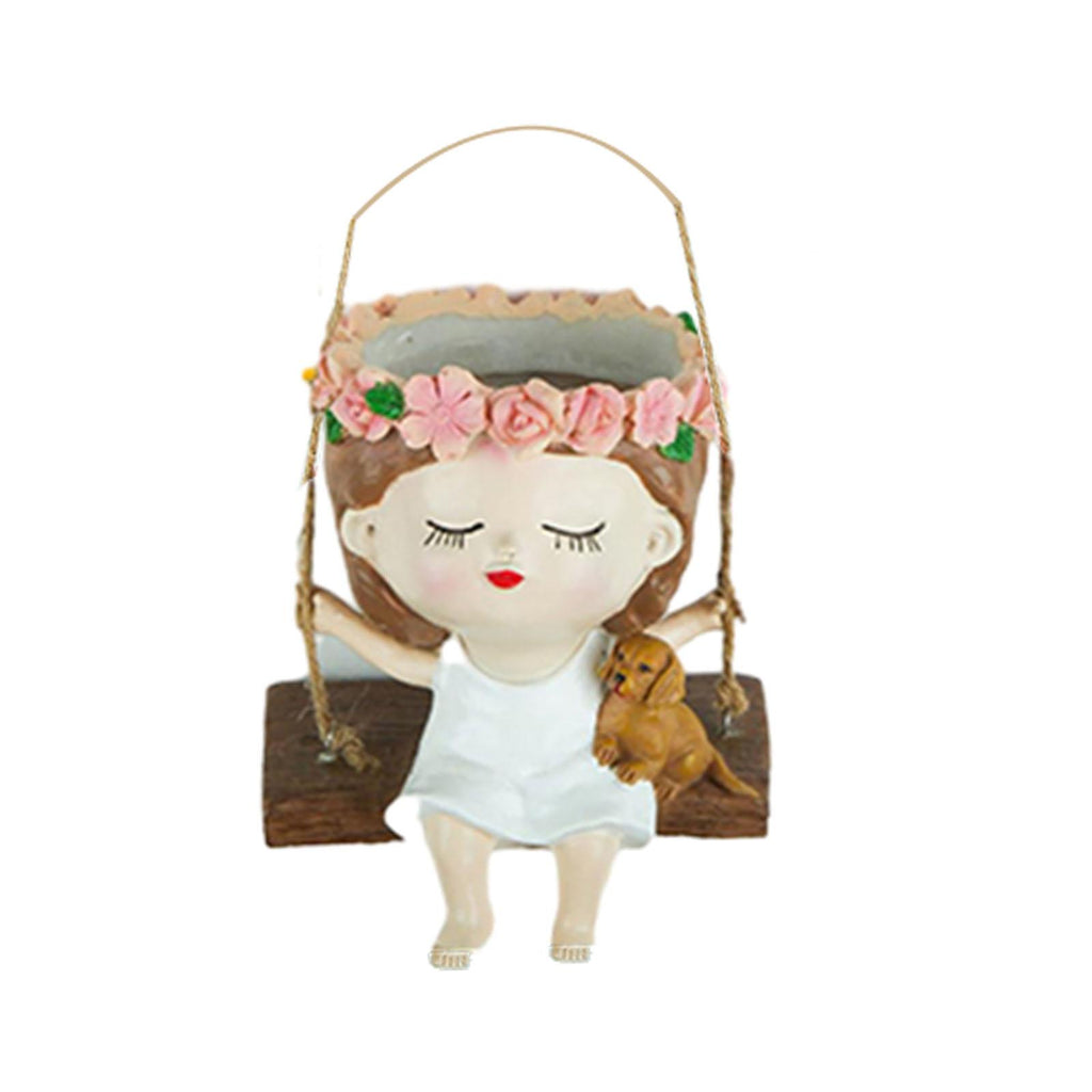 【Compact Size】: This swing hanging rope girl flowerpot measures 11cmx15cm/4.33inchx5.91inch and has a 7.2cm/2.83inch mouth, which is great for growing small plants or succulents. It is an ideal choice for limite space such as balconies or small gardens