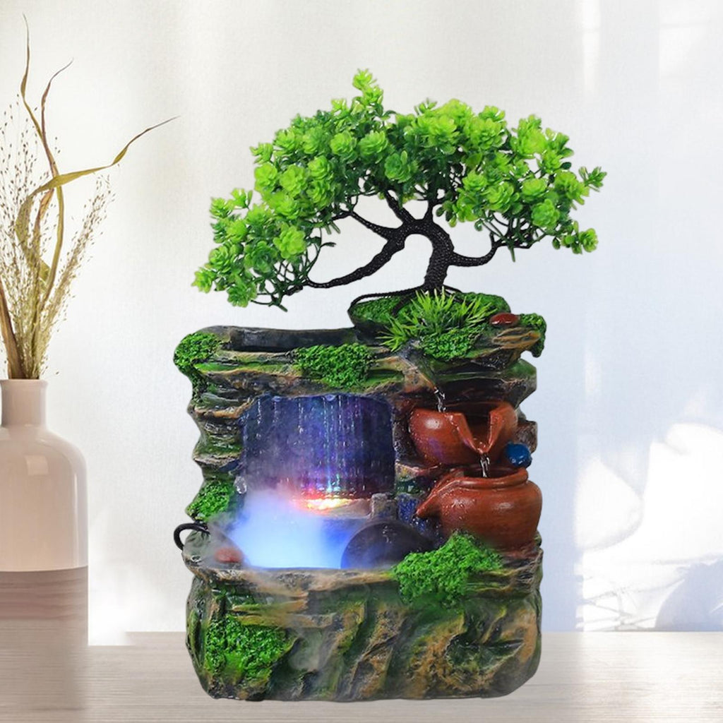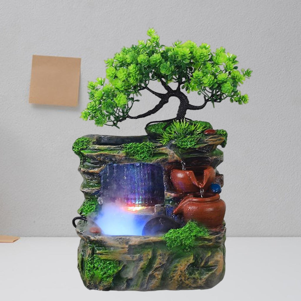 Decoration: With LED lights illuminating the decorative fountain, this fountain with rockeries and trees allows you to feel the charm of nature, create a tranquil atmosphere, soothe your stress and feel relaxed .