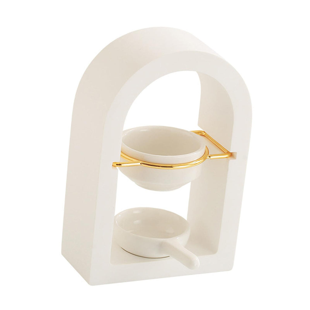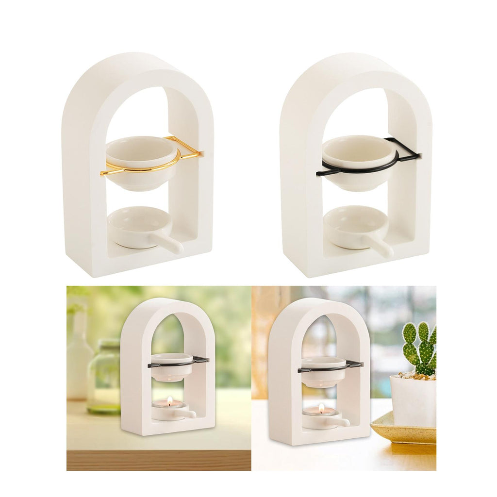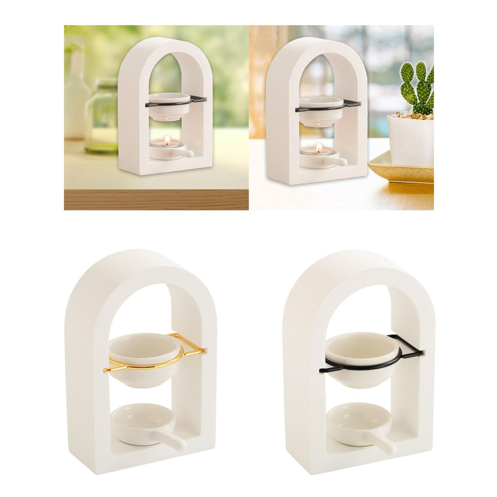 Maxbell Tealight Candle Holder Decorative Essential Oil Burner for Hotel Wedding SPA White and Golden