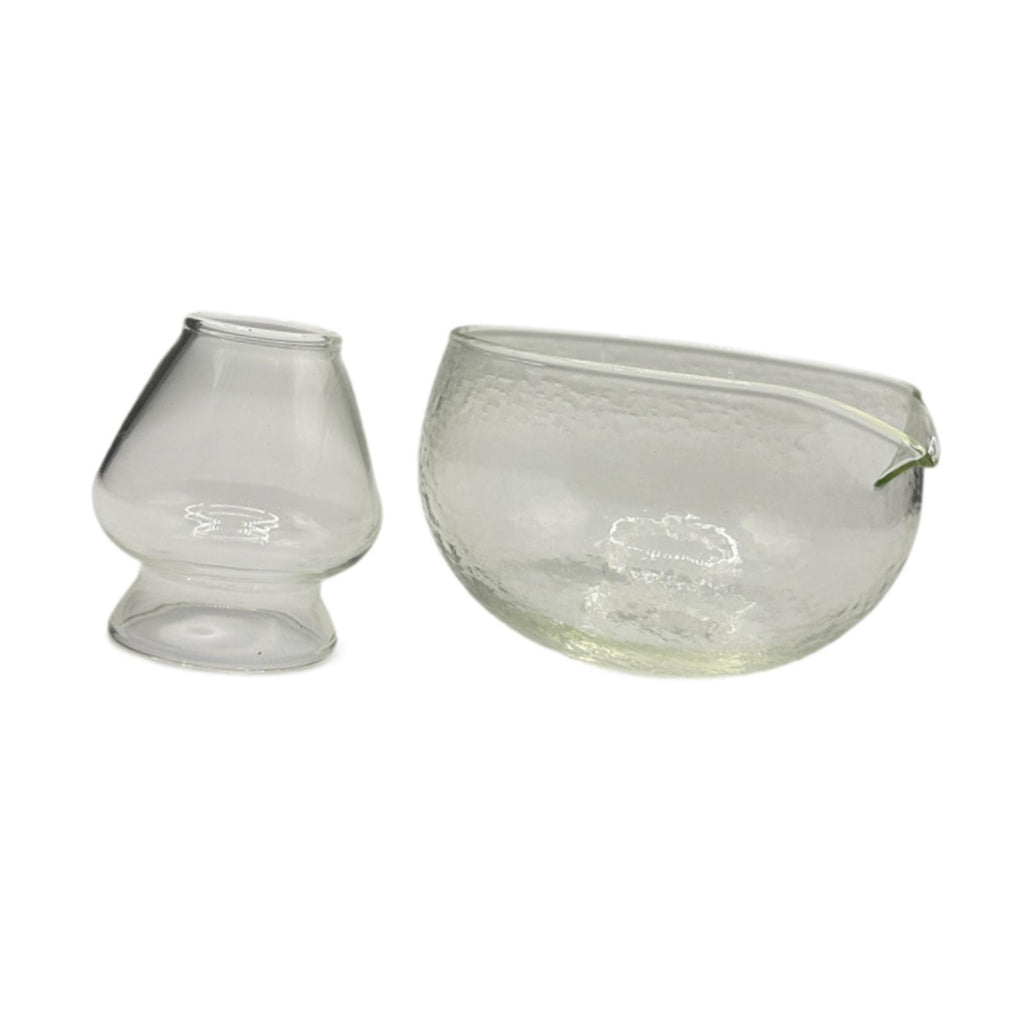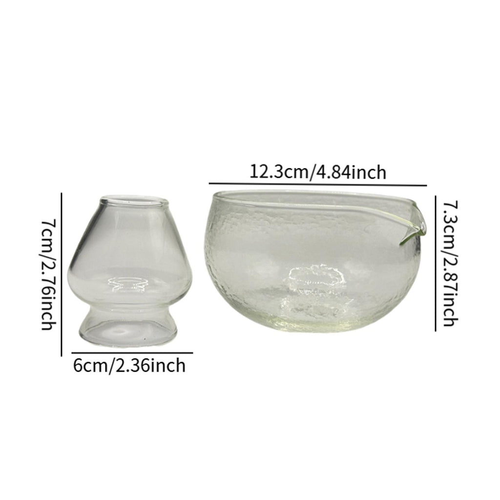 Maxbell Textured Glass Matcha Bowl with Matcha Whisk Holder Glass Tea Bowl for Gifts Light Texture
