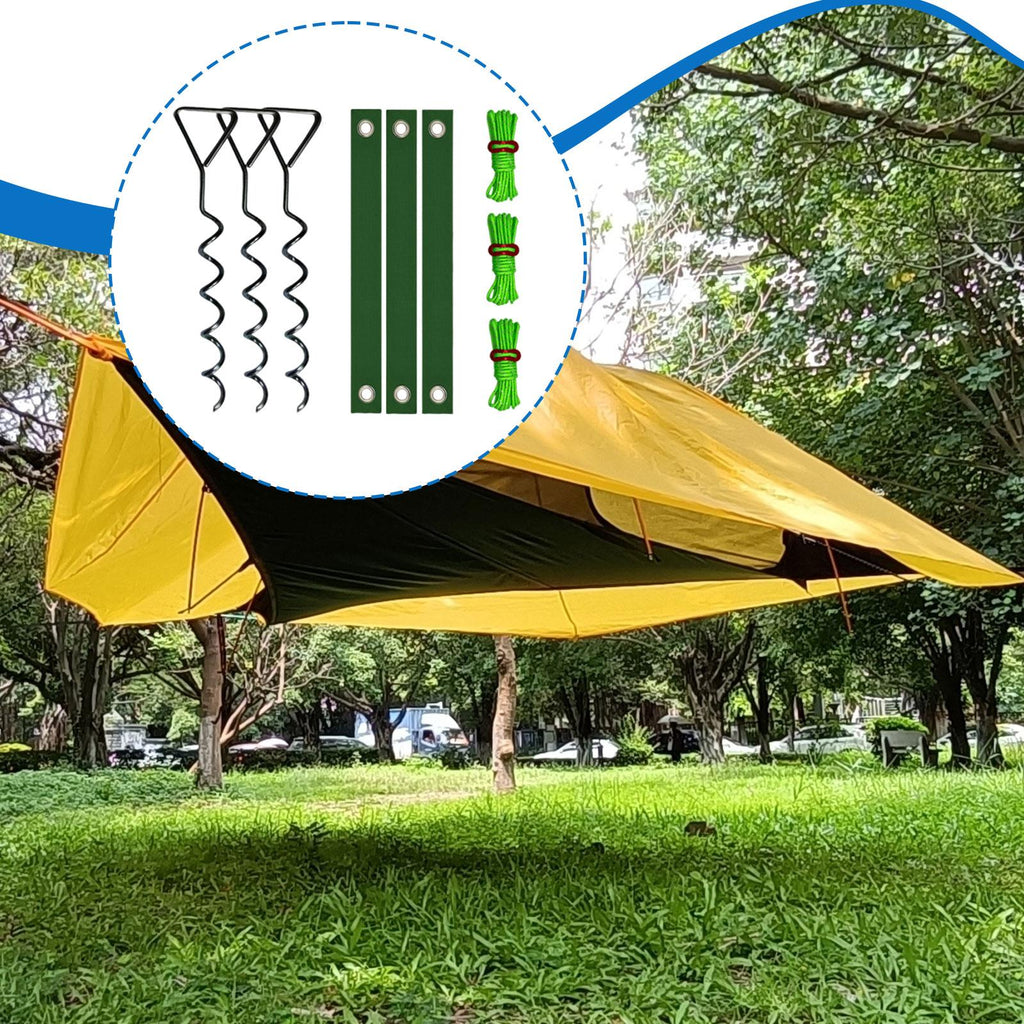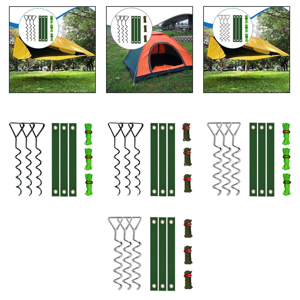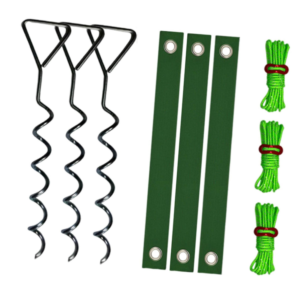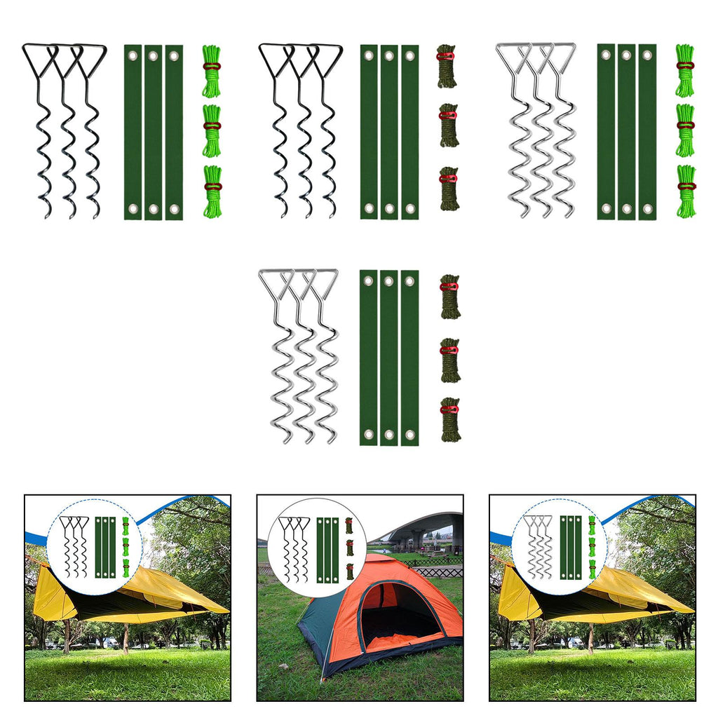【Comprehensive Set】: The package includes a complete 9-piece set, featuring spiral ground anchors, tree ties, and wind ropes to provide a reliable anchoring solution for various applications
