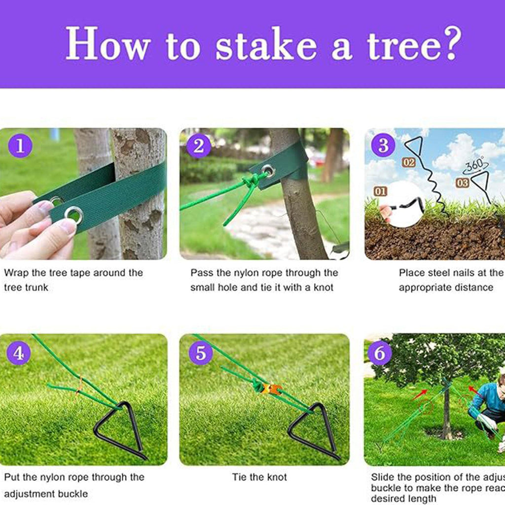 【Material】: This Tree Stake Kit is crafted from Iron, nylon, cotton material, ensuring strong support and long term durability for securing trees and other outdoor structures