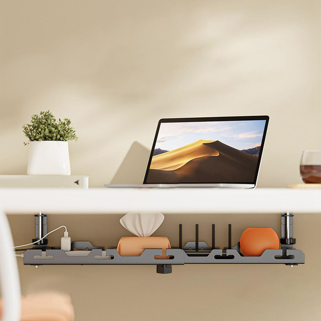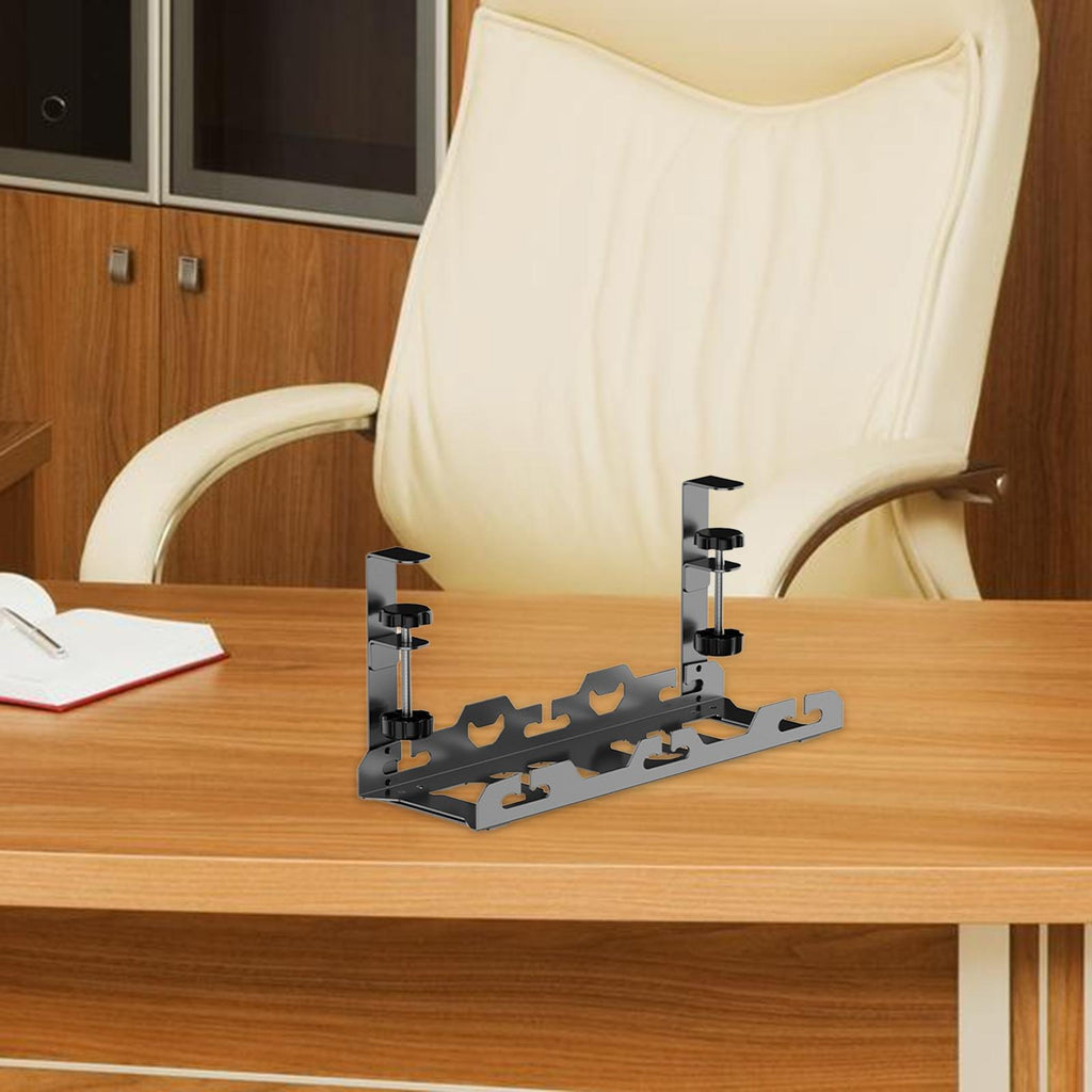- 【Under Desk Cable Management】Keep your desk and floor clean and tidy with the cable management tray, which hides all data cables, power cords, and power strips under your desk. Comes with small wrench tool. Can be clamped desk thickness from 1cm-5cm(0.39inch-1.97inch).