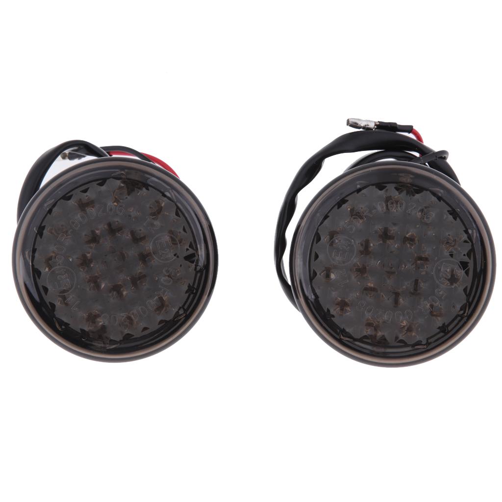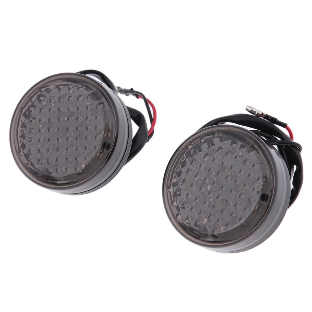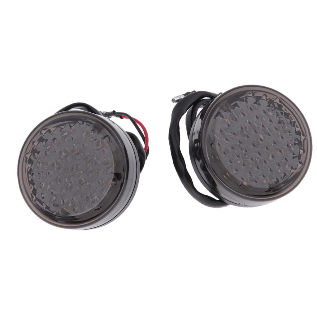 Maxbell Universal 2pcs Round Turn Signal Amber LED Light Smoke Lens for Harley Softail