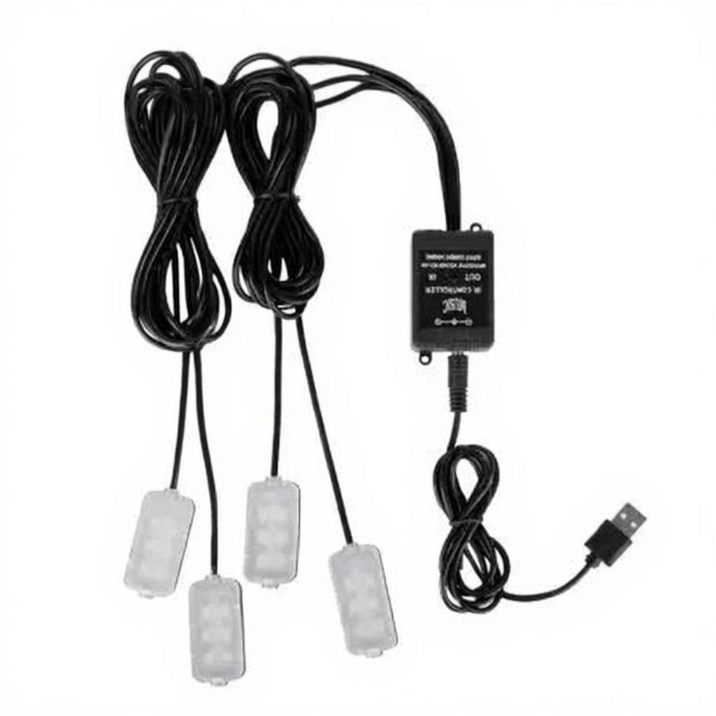 Universal car ambient lighting, portable light-emitting diode footwell light, music sync, multi-color App USB 1-to-4