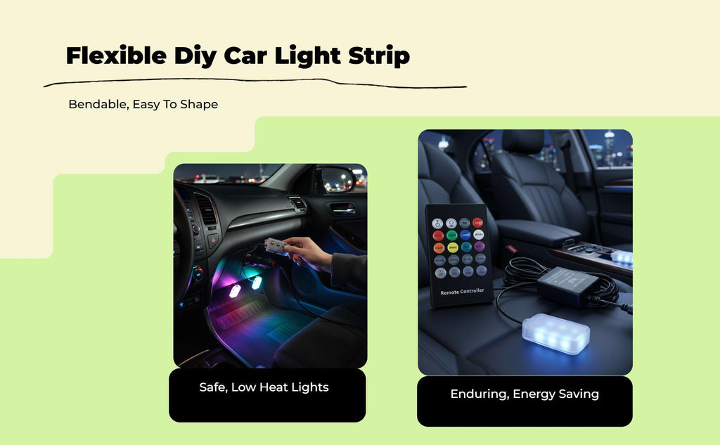Universal Car Atmospheric Lighting, Music Sync, Multi-Color: Enhance your vehicle's interior with this portable connector light-emitting diode footwell light, featuring music sync and multiple color choices for a lively atmosphere.Easy Plug & Play Installation: Designed for universal compatibility, this ambient lighting kit installs easily with a portable connector interface, requiring no modification or wiring.Smart Music Mode & DIY hues: Enjoy dynamic lighting effects that sync with music and voices, plus customizable DIY color modes to match any mood or occasion.Comfortable, resilient Lighting: Made from high-quality PC material, this light-emitting diode strip provides comfortable, enduring lighting for both front and rear seats.Perfect for Night Driving & Decoration: perfect for night driving, parties, or common use, this car accessory adds a stylish accent to your vehicle's interior.Specification: