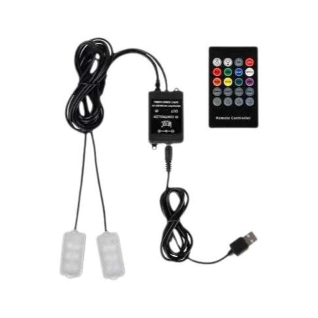 Universal car ambient lighting, portable light-emitting diode footwell light, music sync, multi-color Remote USB 1-to-2