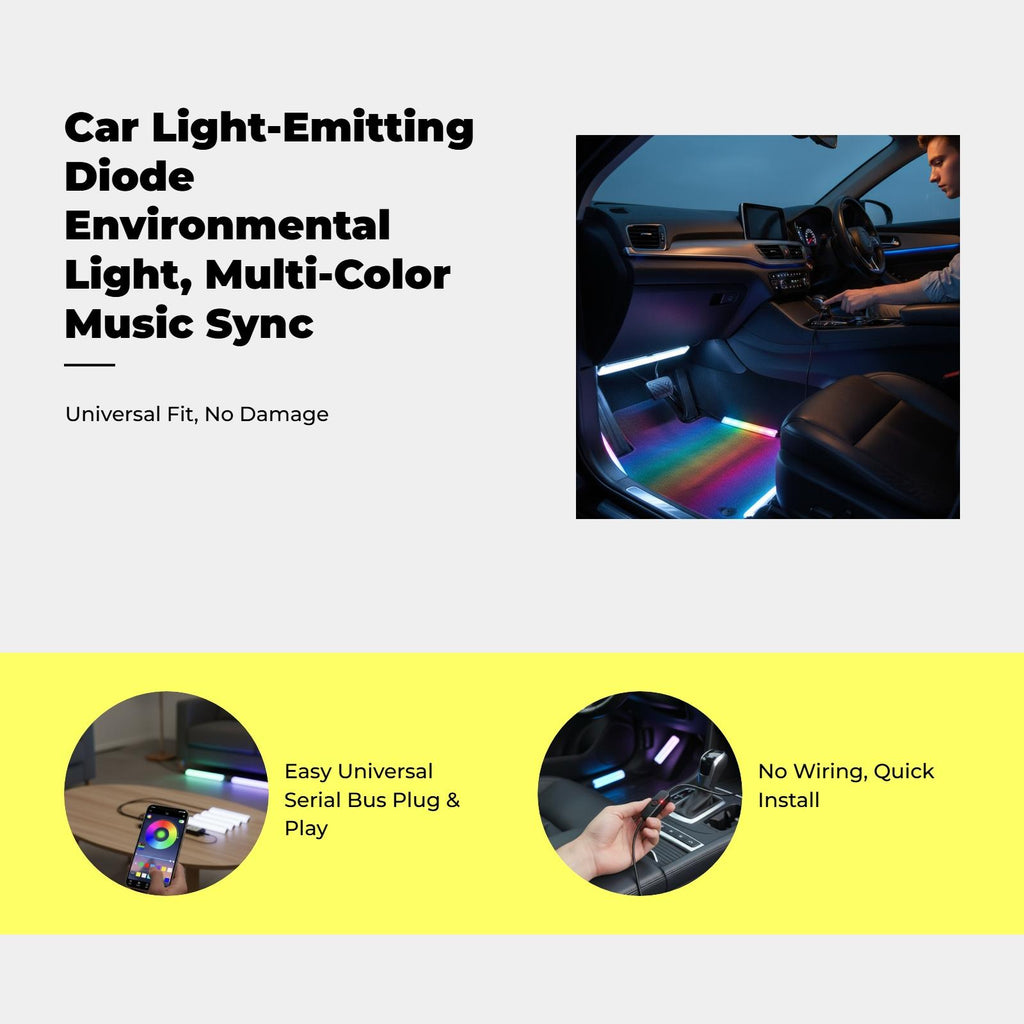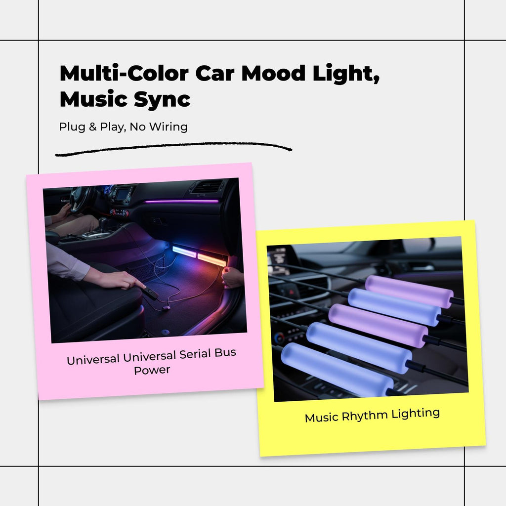 [Universal Serial Bus light-emitting diode Car Interior Atmosphere Light] Elevate your driving experience with this RGB sound-activated atmosphere light, designed for car interiors and footwells. The dynamic lighting reacts to music rhythms, creating a mesmerizing and immersive environment. [Adjustable Multi-Color Modes] Featuring 7 hues and multiple animation modes, you can customize the lighting for parties, gaming evenings, or common drives. The gentle RGB lighting is easy on the eyes and adds a romantic atmosphere to your car. [Easy Installation & Plug-and-Play] No wiring needed—just plug into any Universal Port port. The double-sided ensures secure placement, making it perfect for cars, vehicles, SUVs, and devices with Universal Port ports. [High-Quality sturdy Materials] Crafted from light-emitting diode and PC materials, this atmosphere light is energy-efficient and enduring. Highaccuracy and light-emitting diode lights provide dependable performance. [Versatile Use & Convenient Charging] perfect for car decoration, parties, camping, and home use. Its portable design and easy Universal Port charging mean you can set the mood anywhere you proceed.