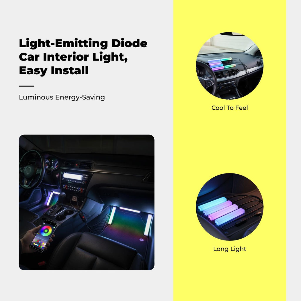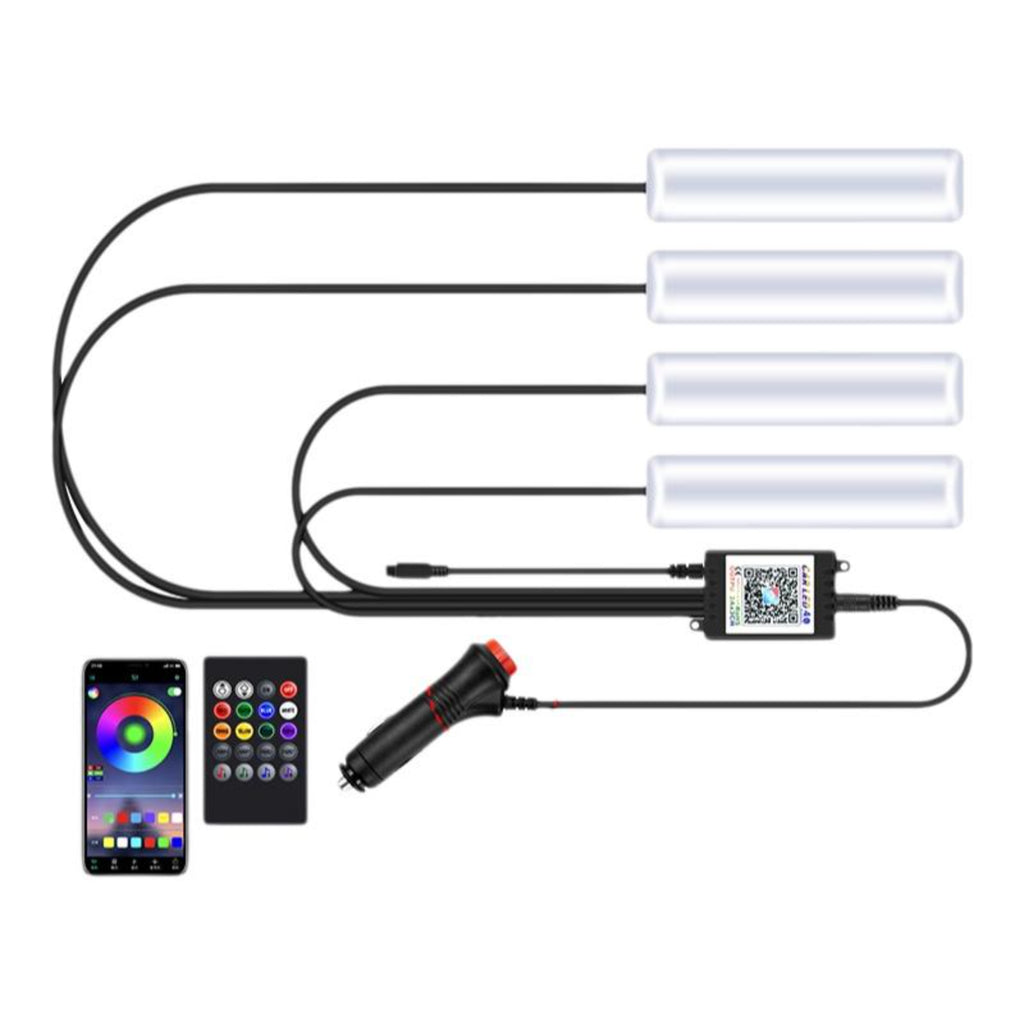 Universal Serial Bus light-emitting diode Car Interior Ambient Light, RGB Sound-Activated, Footwell Background Lighting Multicolor Remote+APP Control