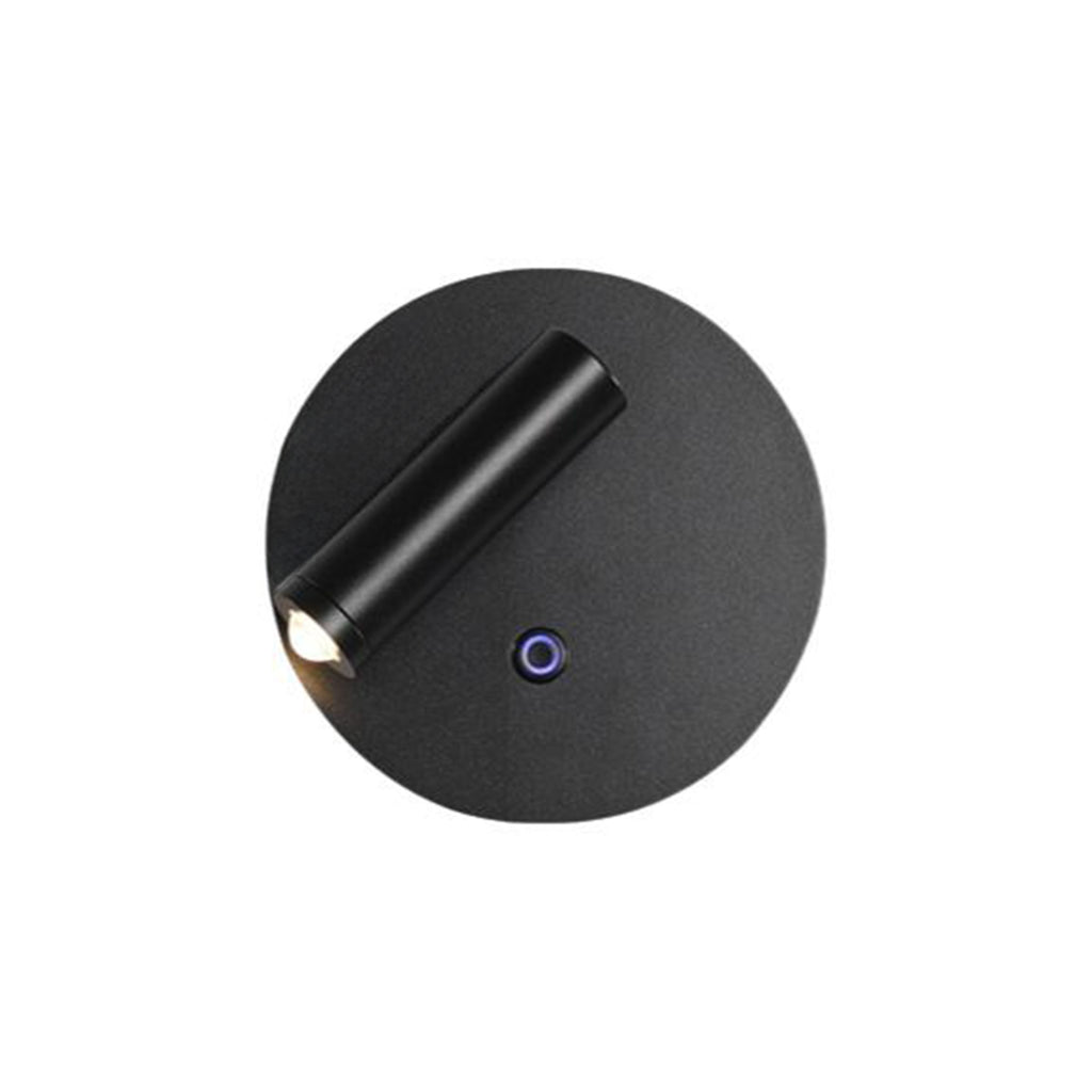 Wall Sconce, Rotatable light-emitting diode Bedside Lamp, Press Control, Modern Minimalist Matte Black Round