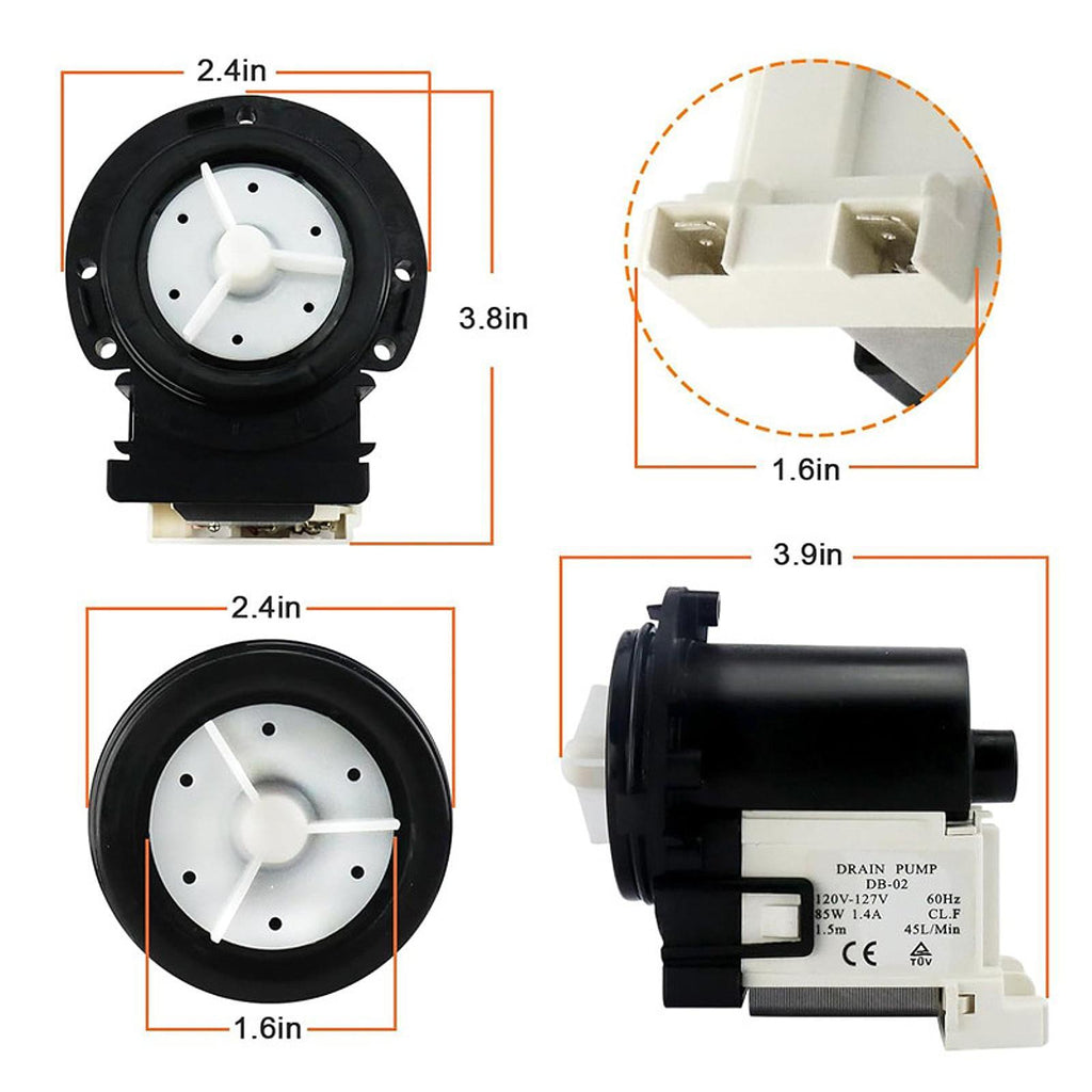 - 【Function】: This washer drain pump motor can be effectively resolves common washing machine issues such as failure to drain, pump not rotation, excessive noise during operat, and water leakage.