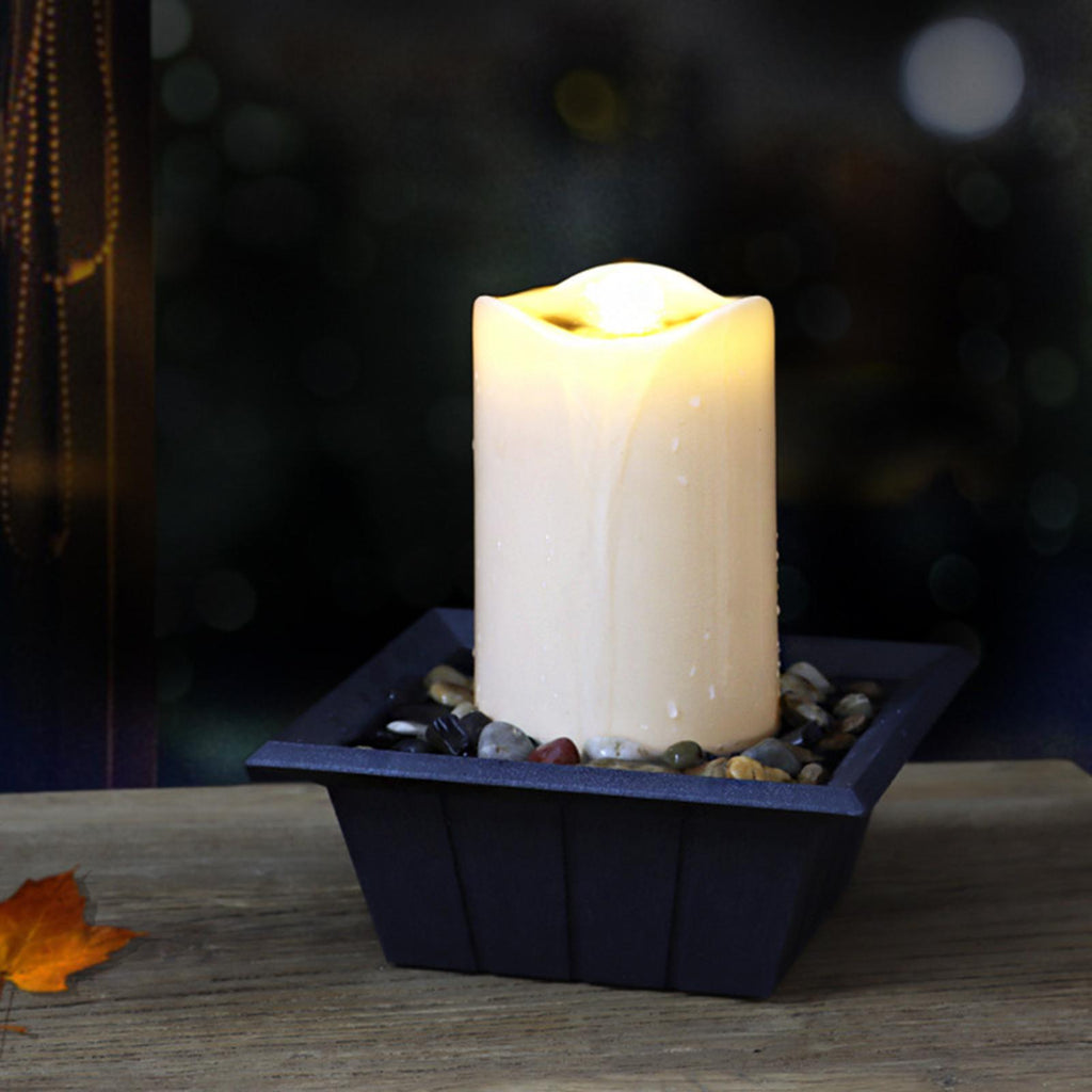 - The LED light creates a beautiful view of flowing water slowly flowing down from the center of the burning candle, and the candle light follows the rhythm of the flowing water, which is fashionable and beautiful.